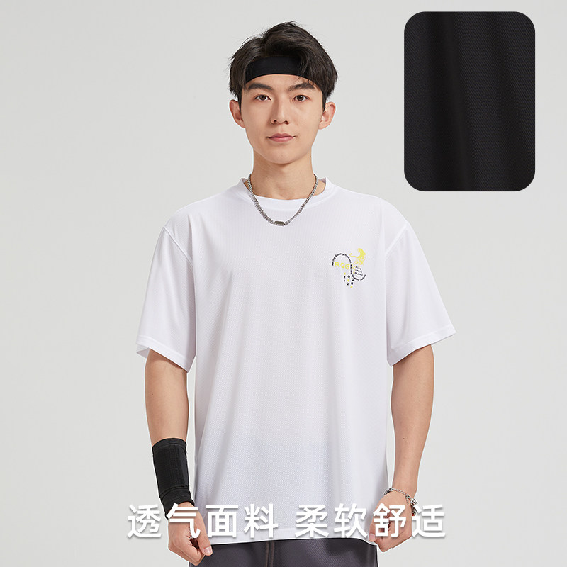 男士短袖圆领休闲衫上衣宽松半袖t恤潮流青少年夏季速干2025新款