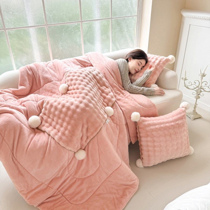 韩式仿兔毛绒两用抱枕q被加厚车载靠垫办公室沙发午睡可折叠懒人