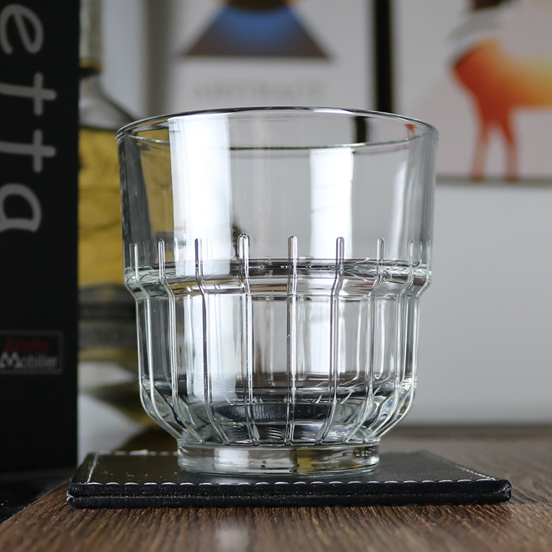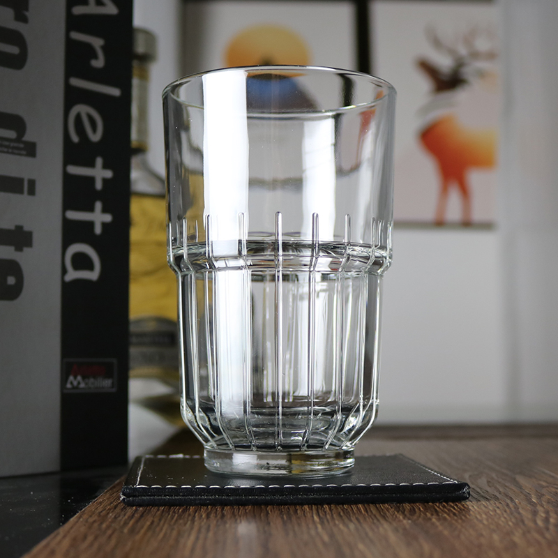利比领克玻璃杯商用可叠耐热泡茶杯子条纹拉花咖啡杯子可定制LOGO