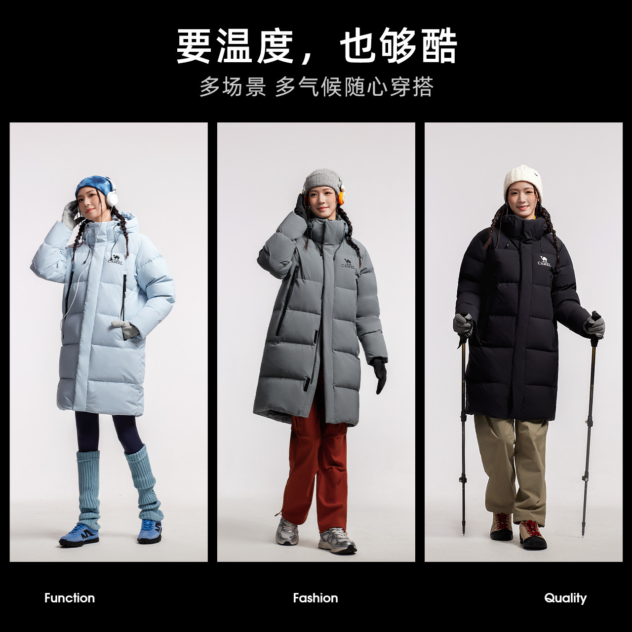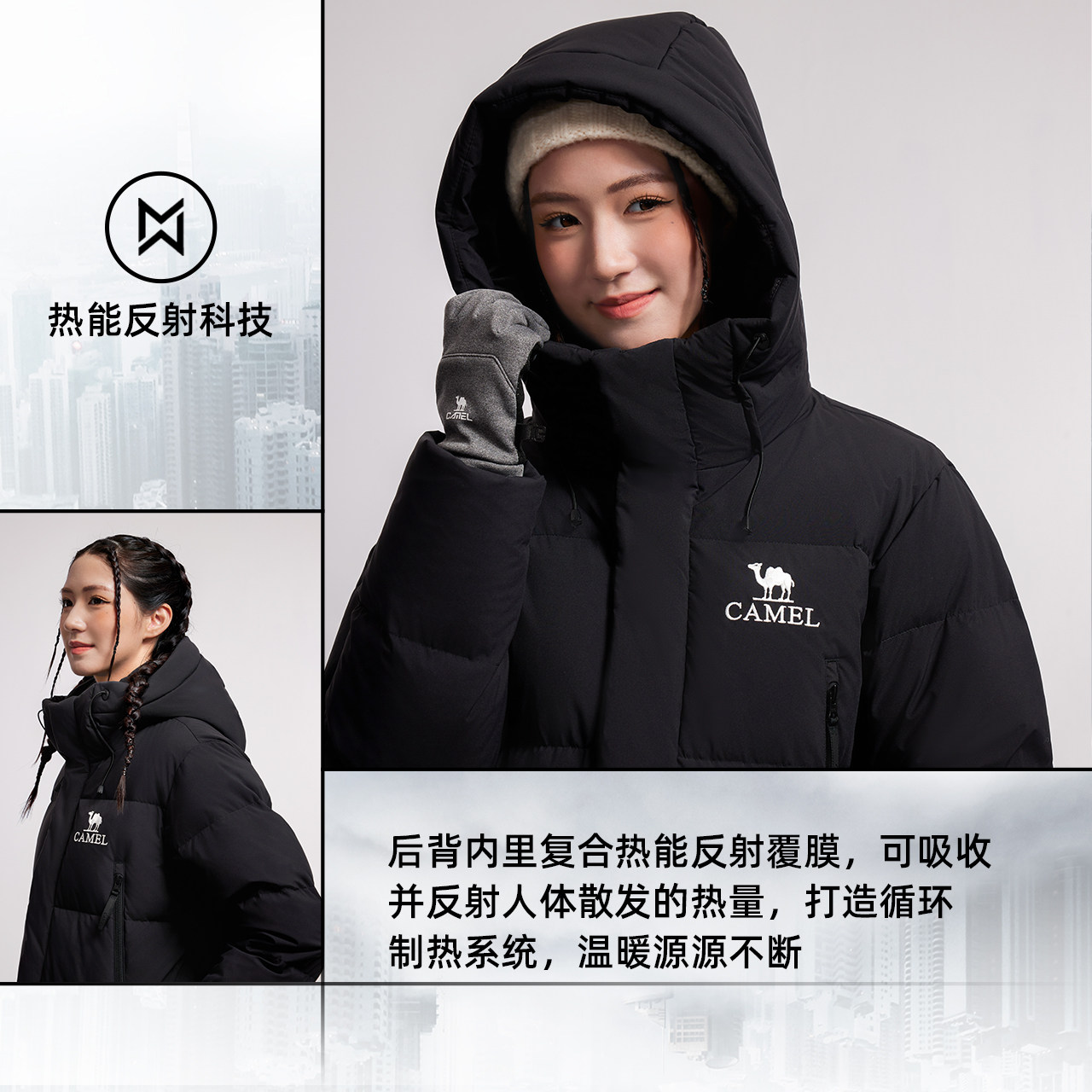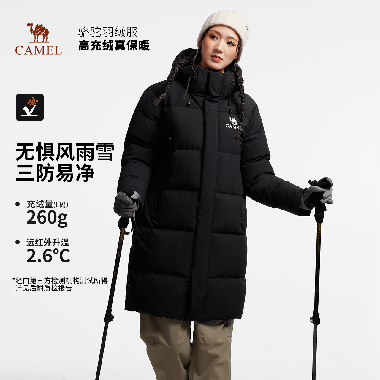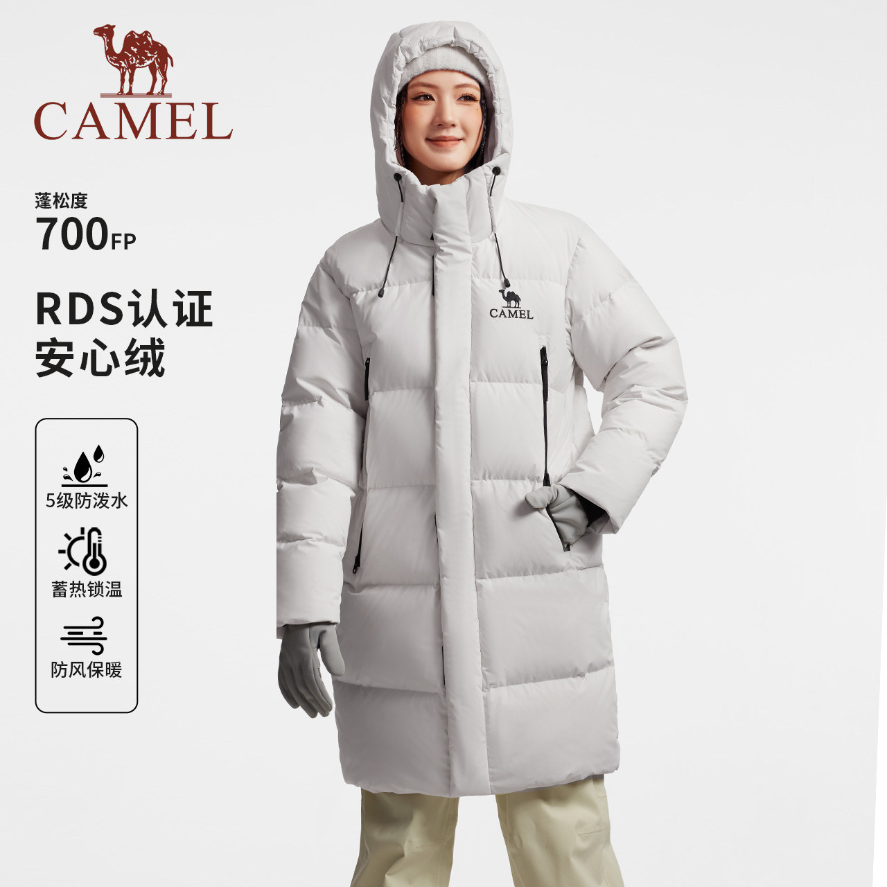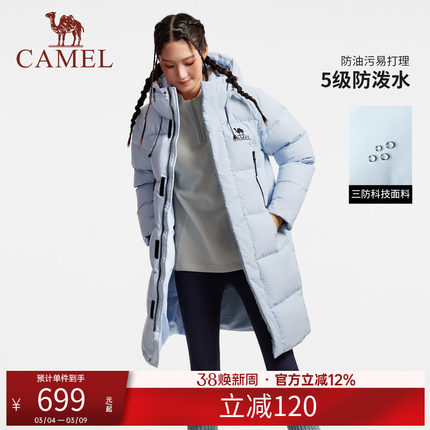 骆驼中长款羽绒服男女同款2025冬季新款三防加厚保暖连帽羽绒外套