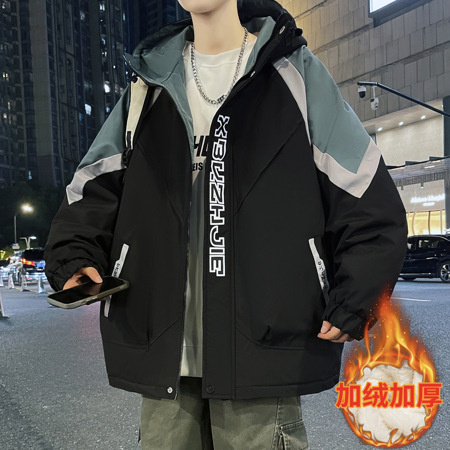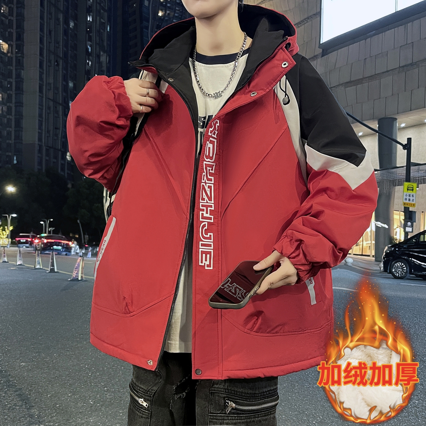 13青少年加绒厚夹克12岁男孩初高中学生冲锋衣外套15大童冬装棉衣