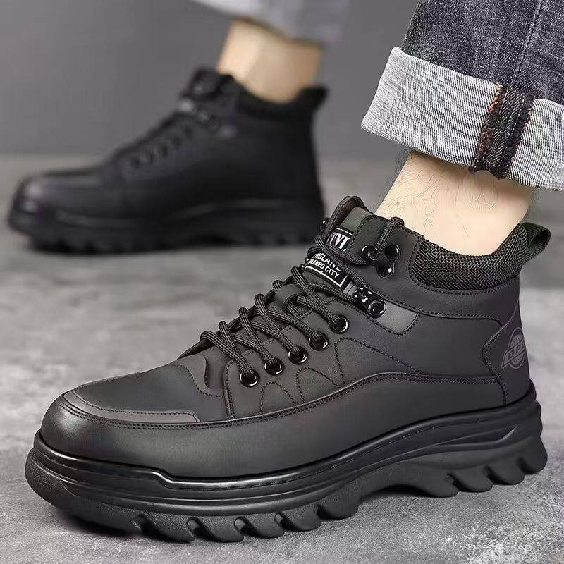 意尔康棉鞋羊毛男鞋冬季加绒保暖高帮皮鞋男士真皮防滑户外休闲鞋