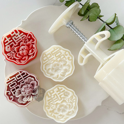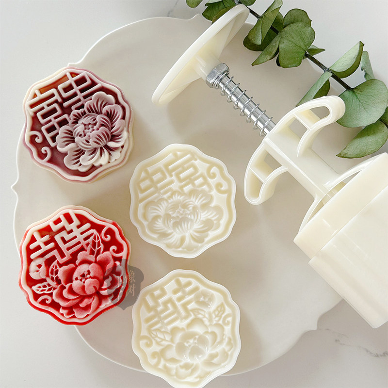 中式花卉国花牡丹鲜花饼diy工具75g富贵吉祥国潮中秋节月饼模具