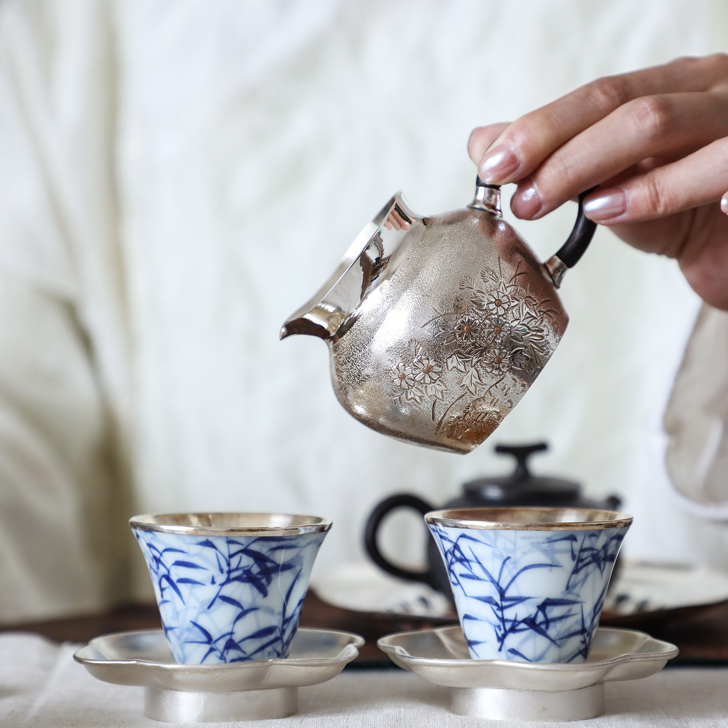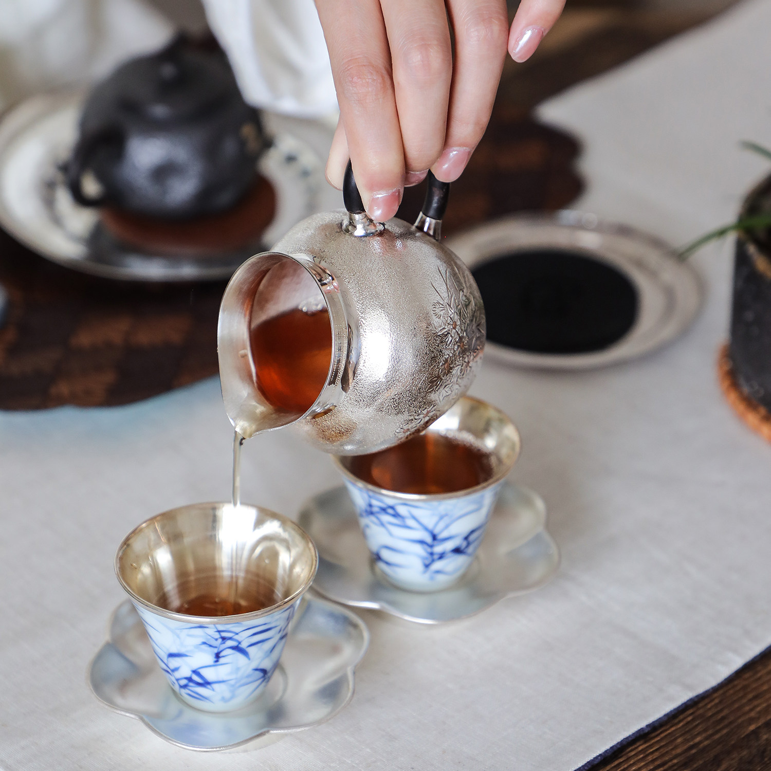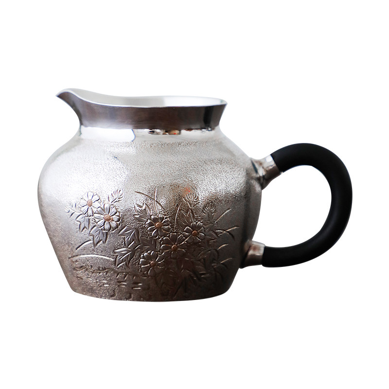 纯银时代 小雏菊公道杯足银999手工一张打防烫分茶器匀杯190ml