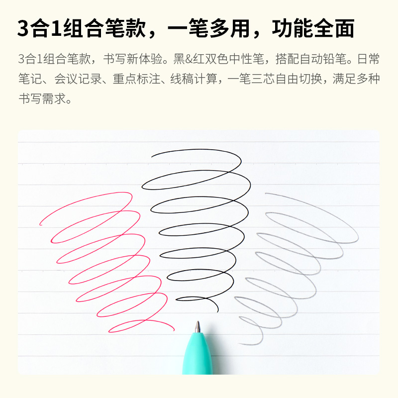 KACO SMILEYWORLD联名优写三合一多功能笔创意书写学生刷题办公文具可爱ins风格自动铅红笔黑笔