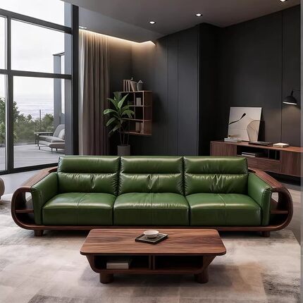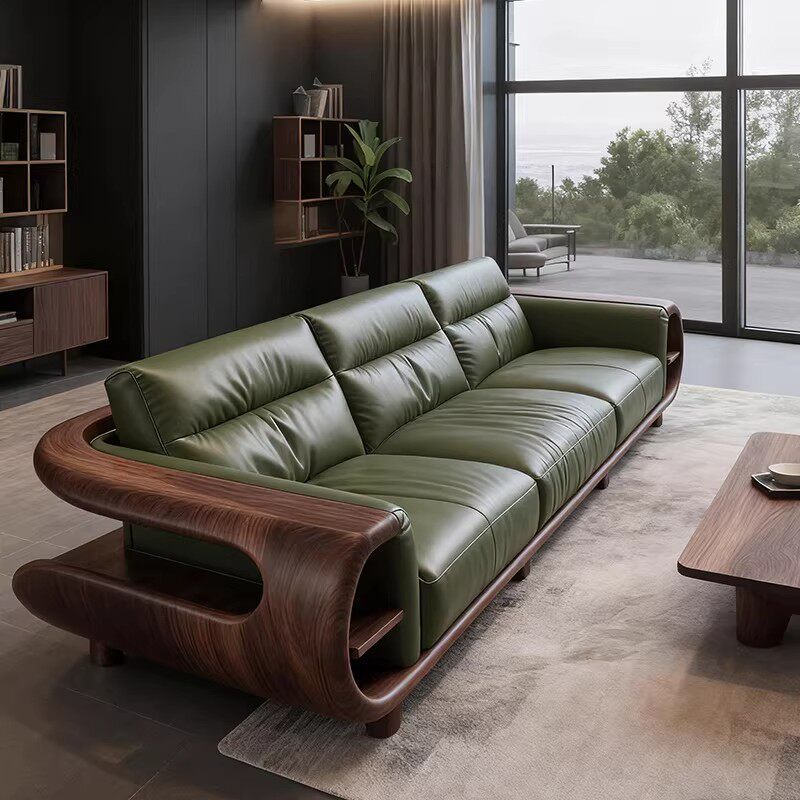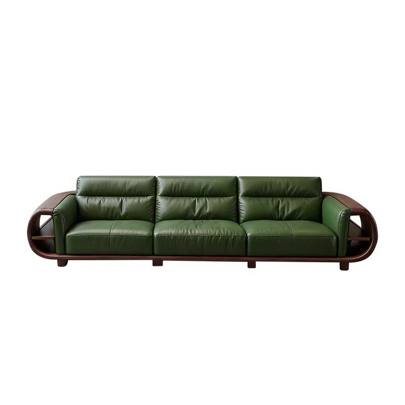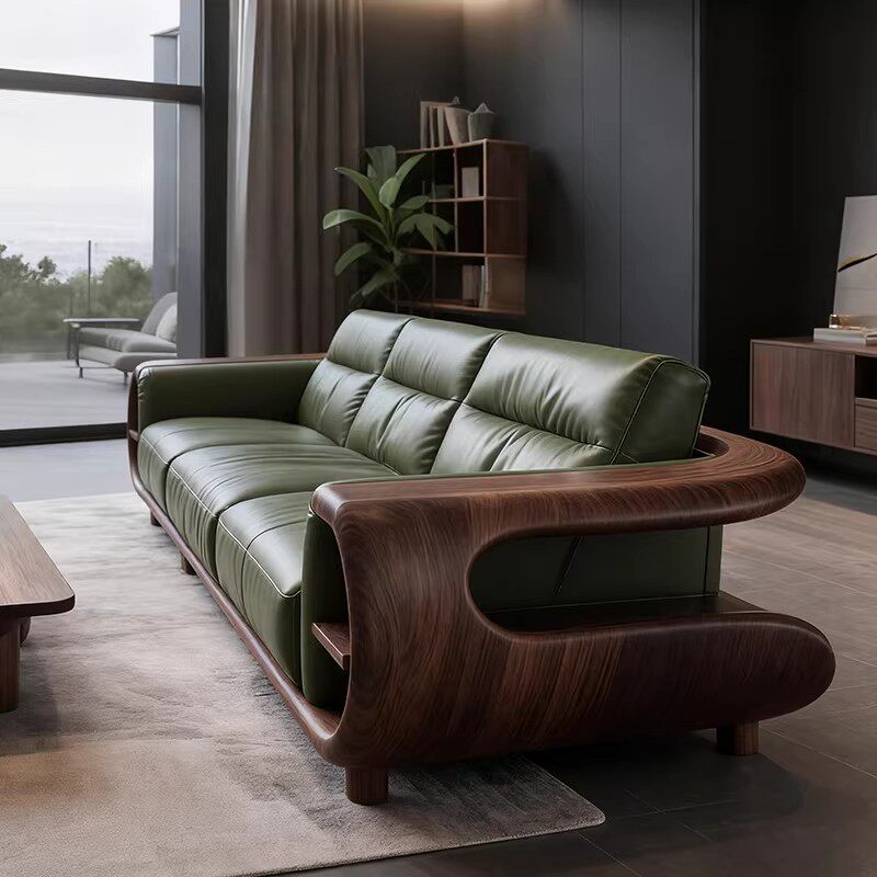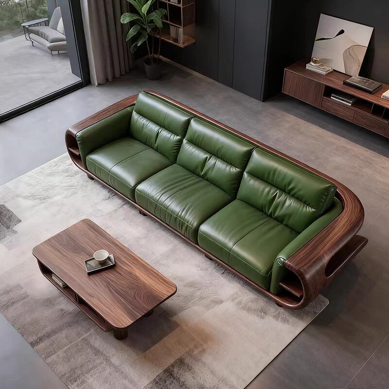 新中式实木直排沙发黑胡桃木意式现代皮艺轻奢高端客厅大平层定制