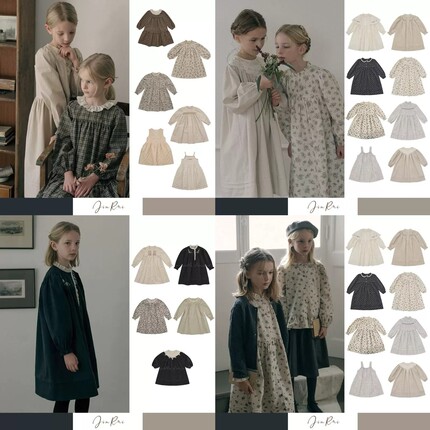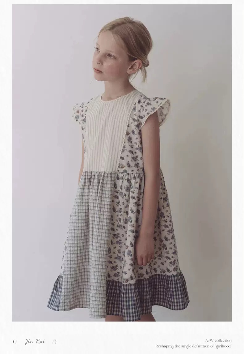 清仓特价ins爆款秋LOU女童连衣裙纯棉印花长袖童裙子裥棉背带裙