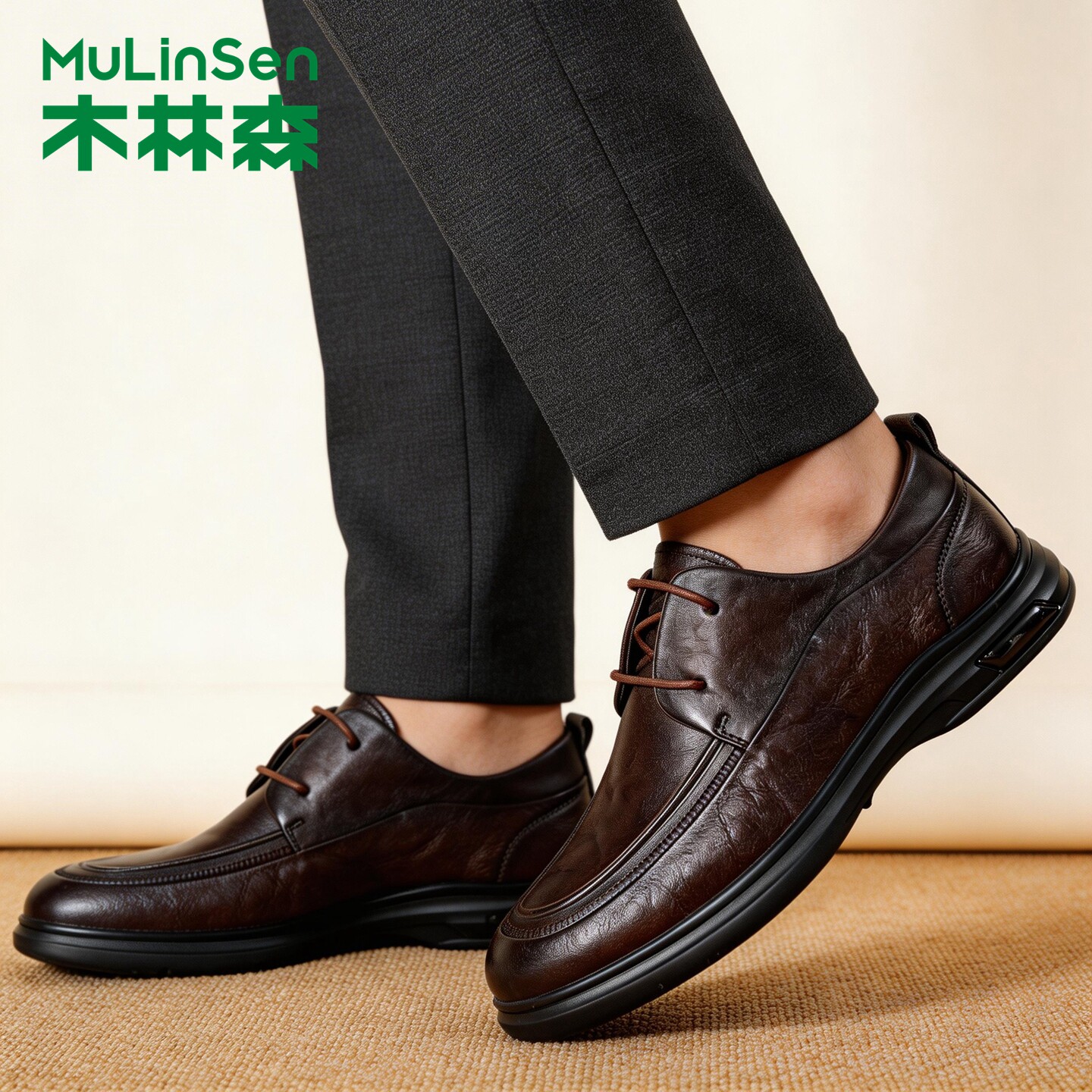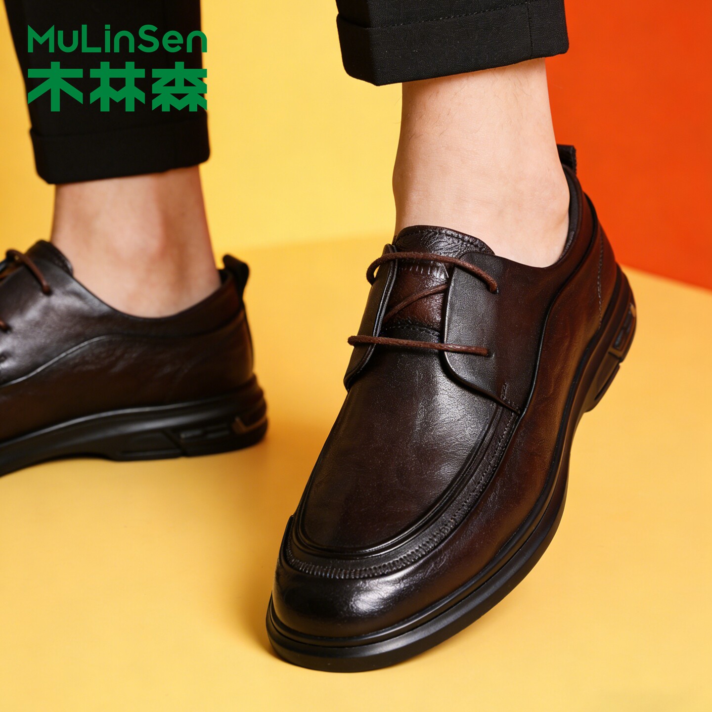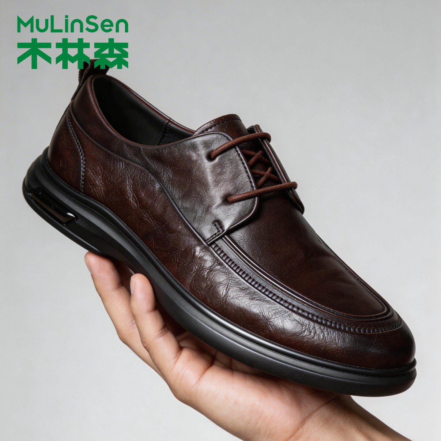 木林森男鞋秋季系带通勤商务休闲皮鞋男款头层牛皮透气软底爸爸鞋