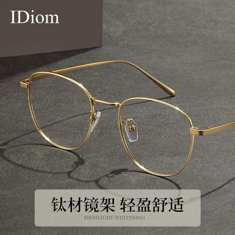 超轻纯钛金丝边近视眼镜框男可配度数金色金边斯文败类眼睛镜架女