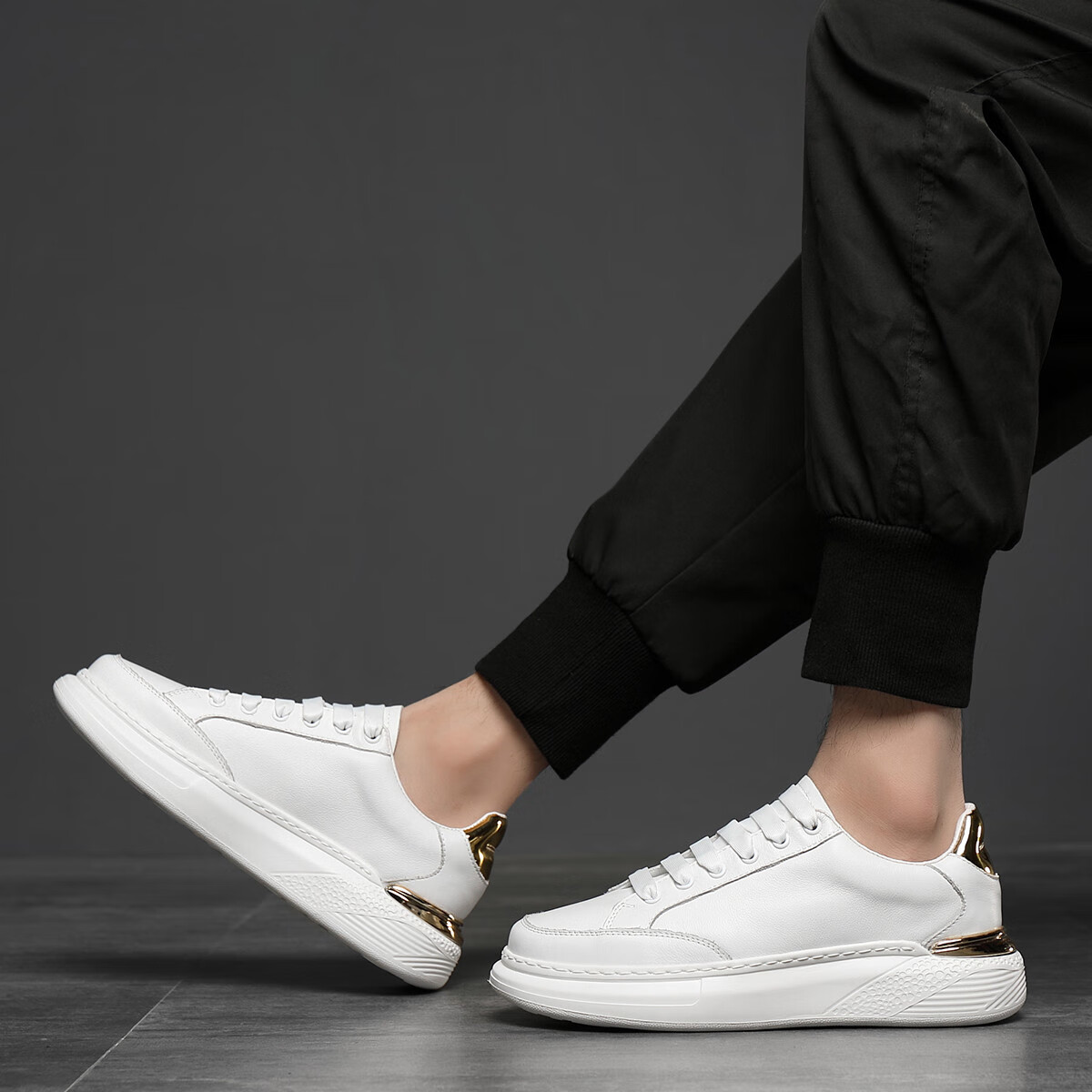 【头层牛皮】春季时尚时尚男士厚底板鞋小白潮鞋男休闲鞋运动男鞋