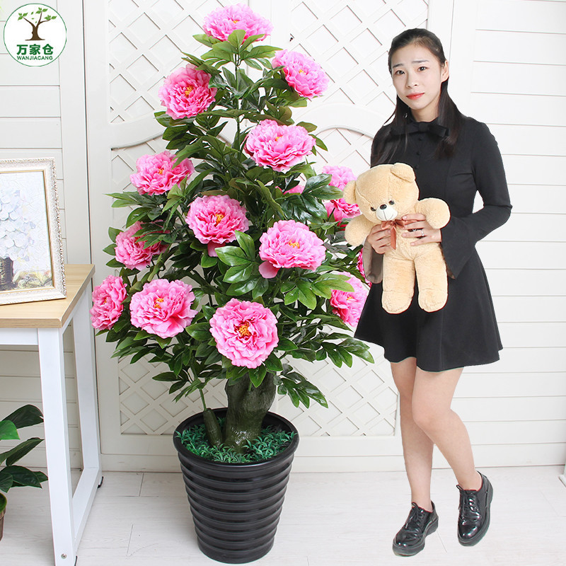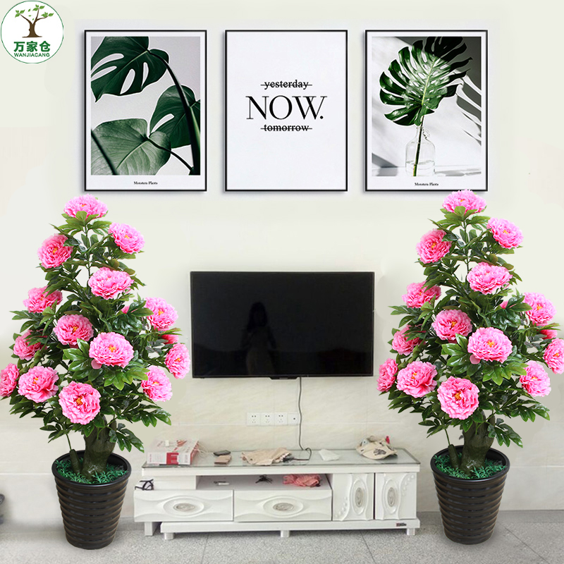 仿真植物盆栽摆件塑料装饰客厅摆件牡丹花大型绿植盆景落地花假花