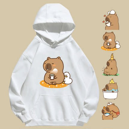 软萌可爱水豚卡皮巴拉男女情侣同款卡通周边定制外套上衣带帽卫衣