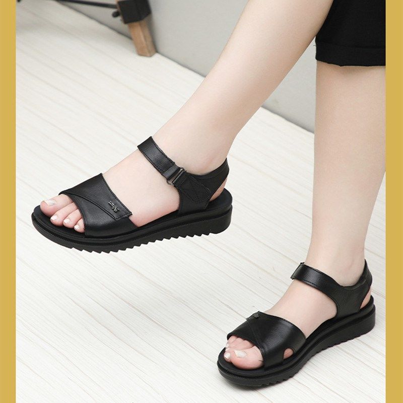 中老年妈妈凉鞋女2025新款夏季真皮防滑软底头层牛W皮奶奶鞋皮凉