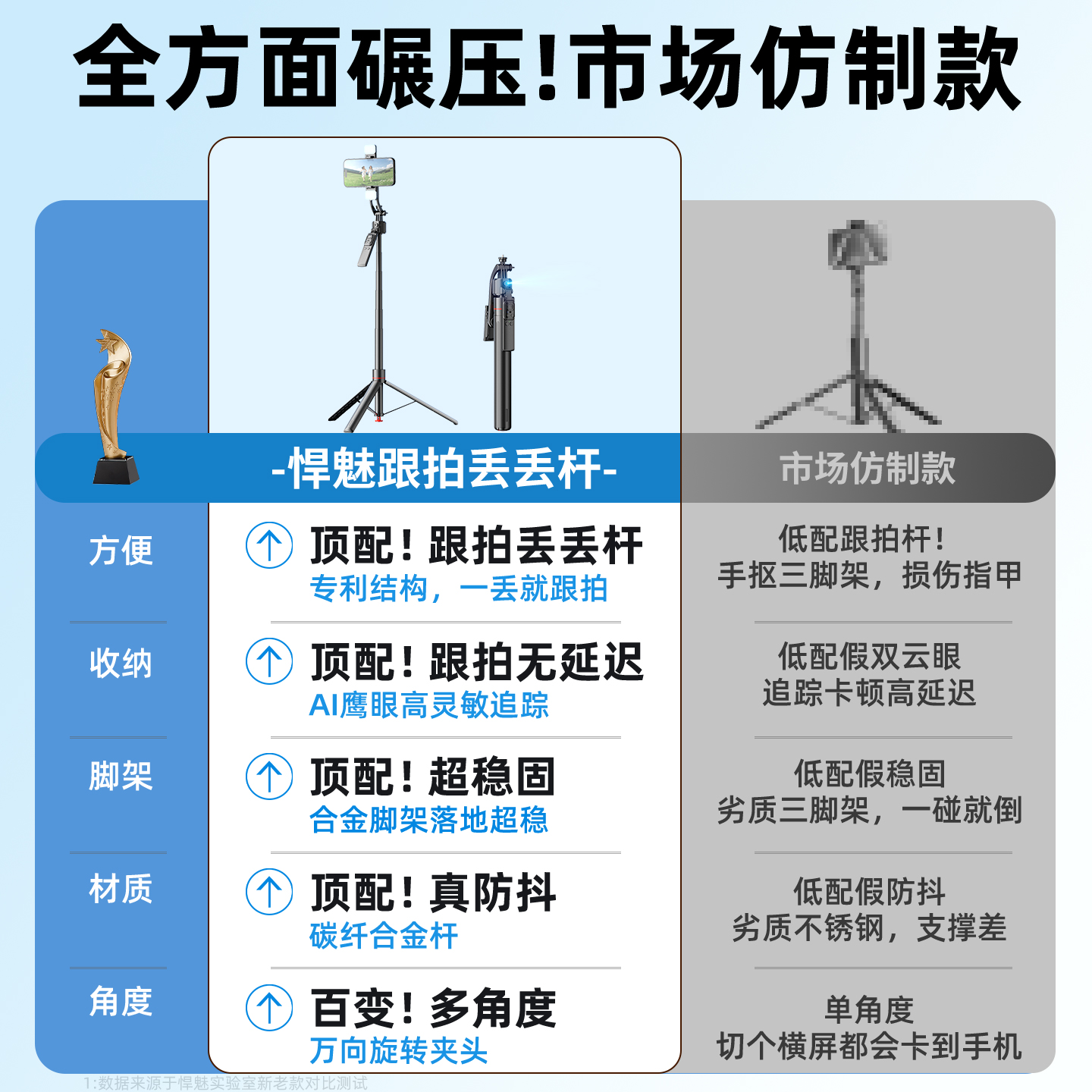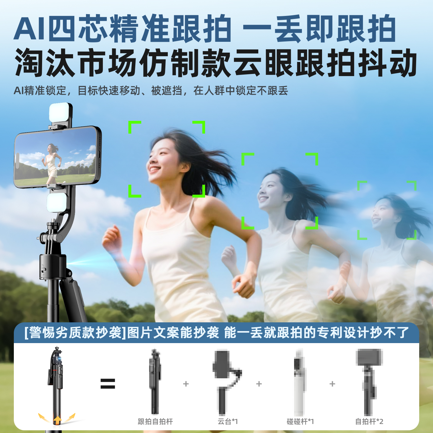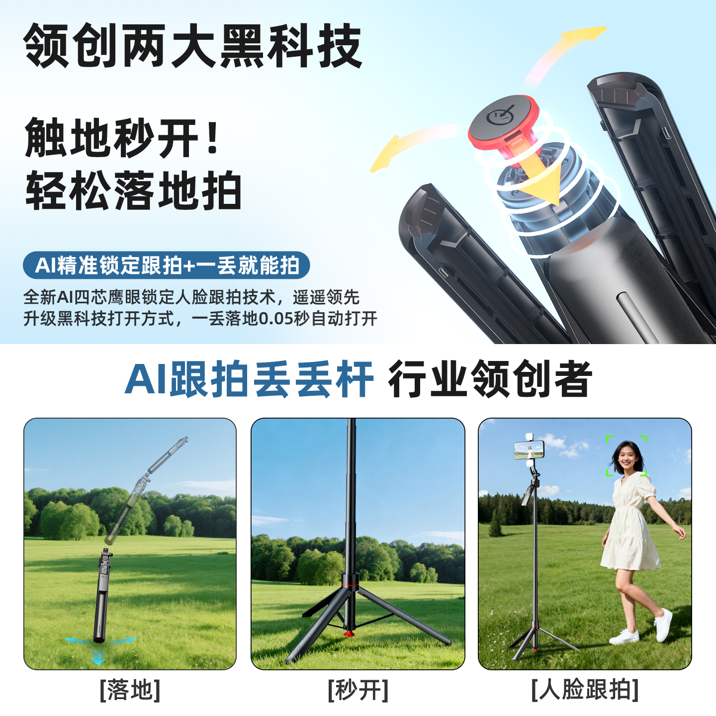 智能跟拍丢丢杆2025新款云台手机通用自拍杆全自动手持拍照拍摄神器360度旋转支架旅游便携演唱会落地三脚架