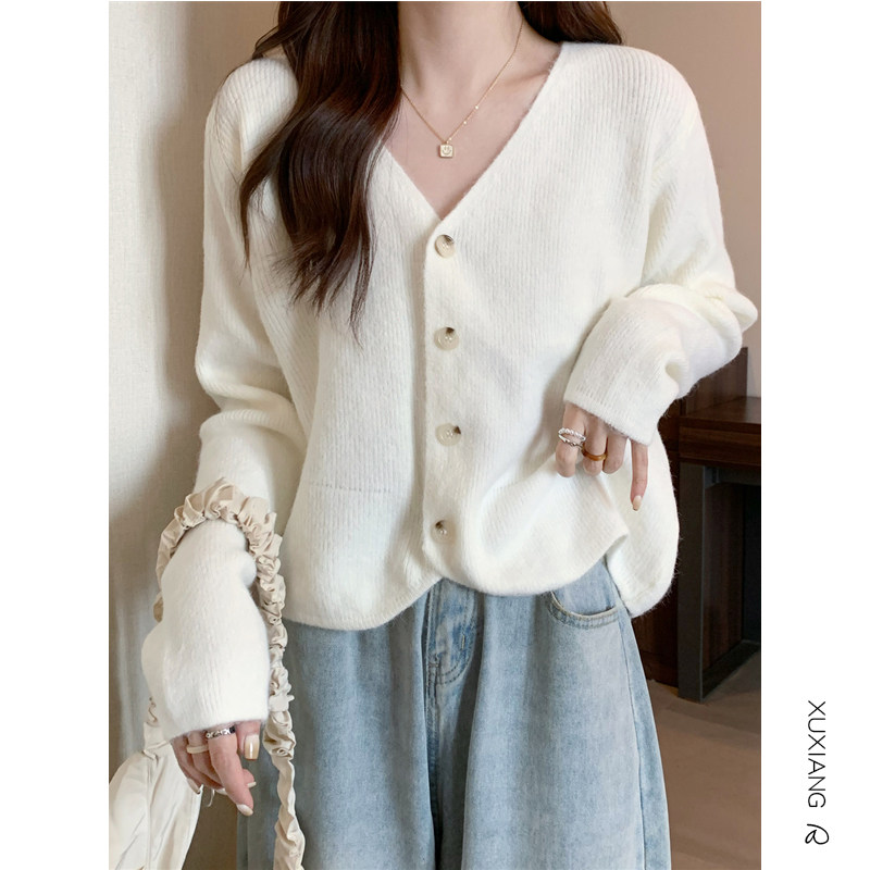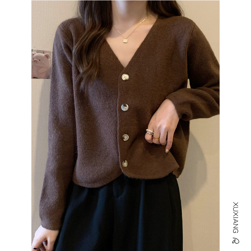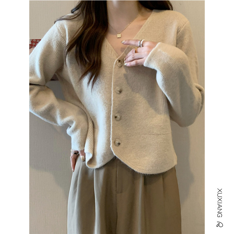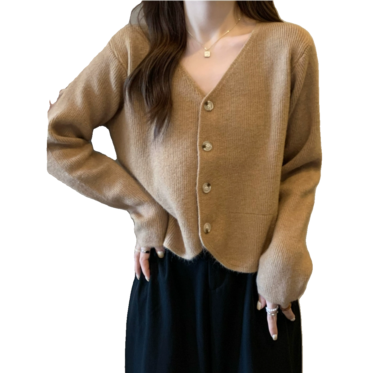 春秋2024新款V领百搭气质洋气的针织开衫外套毛衣女春秋短款上衣