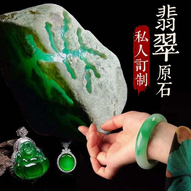 缅甸天然翡翠原石毛料玉手镯冰种阳绿吊坠玉石定制翡翠手镯帝王绿