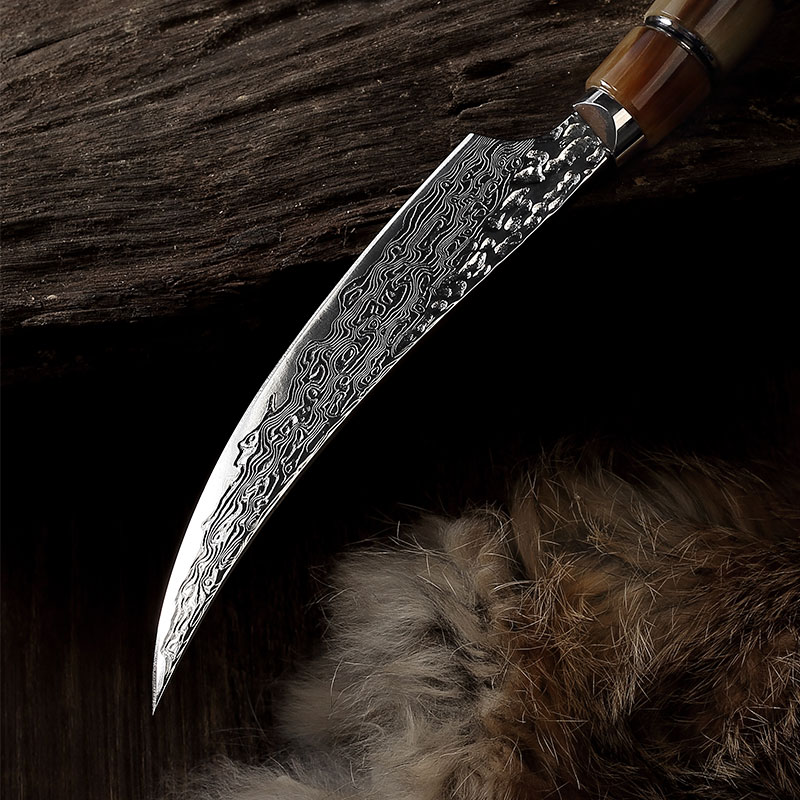 日本大马士革钢蒙古剔骨小尖弯刀