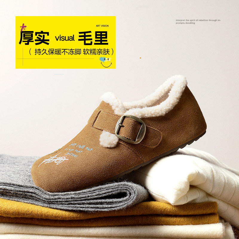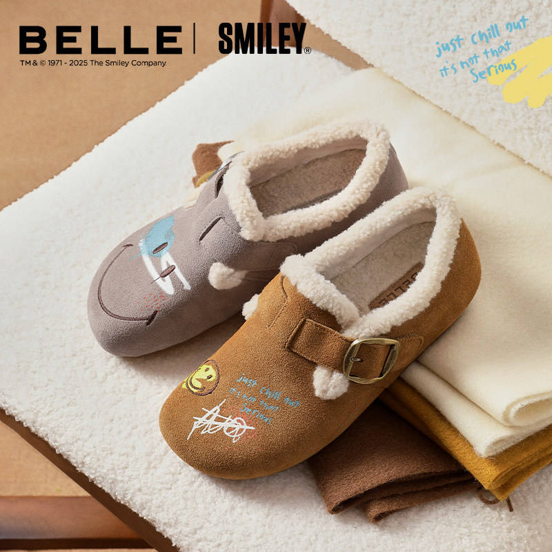 百丽礼盒SMILEY联名全麦吐司流浪版女冬季加绒勃肯毛毛棉鞋雪地靴
