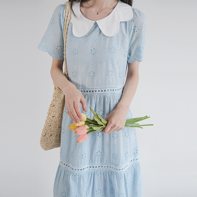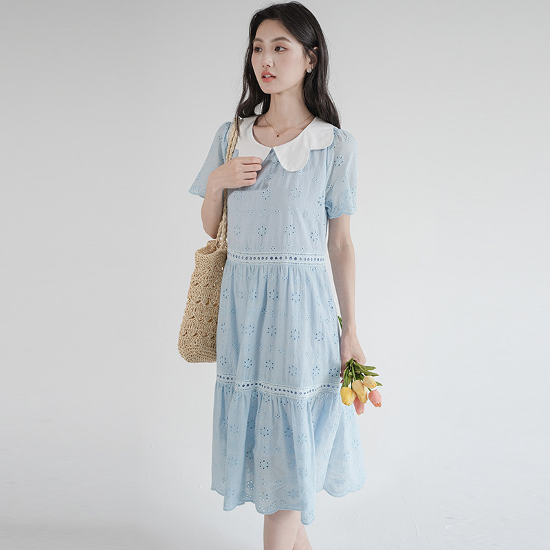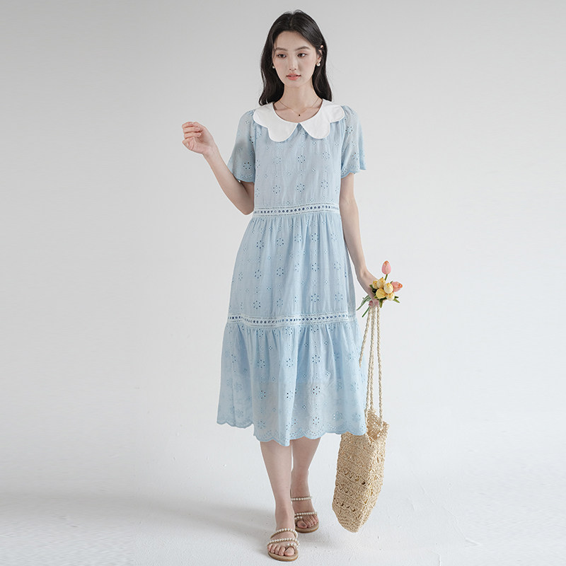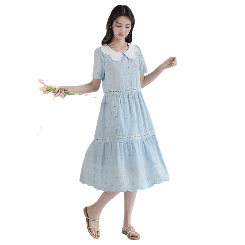 蓝若水大码女装森系全棉镂空蕾丝裙胖mm2026夏装新款娃娃领连衣裙