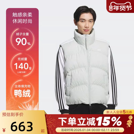 adidas阿迪达斯三叶草男女羽绒服背心冬保暖立领运动马甲KS8492