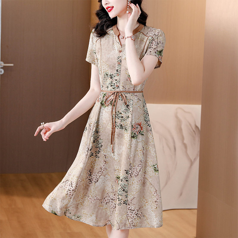 杭州大牌桑蚕丝真丝连衣裙女2025新款高端正品小个子中年妈妈气质
