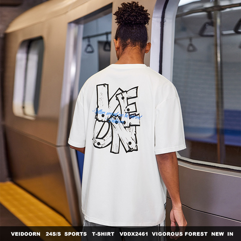 夏季新款原创复古卡通嘻哈说唱日系印花纯棉修身短袖T恤男圆领