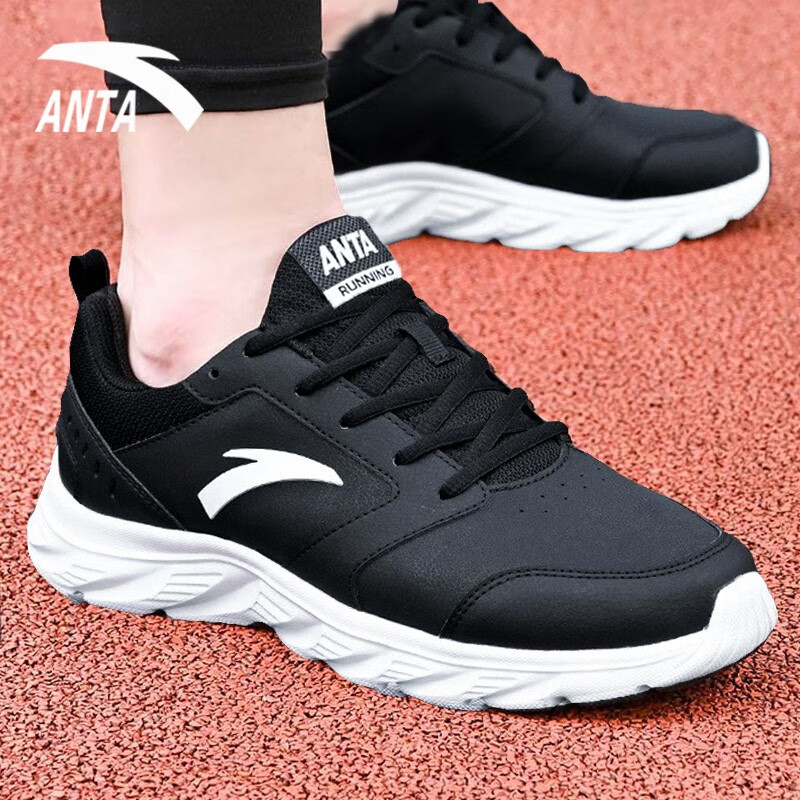 安踏男鞋秋季休闲运动鞋2025新款皮面防水跑步鞋软底旅游板鞋男士
