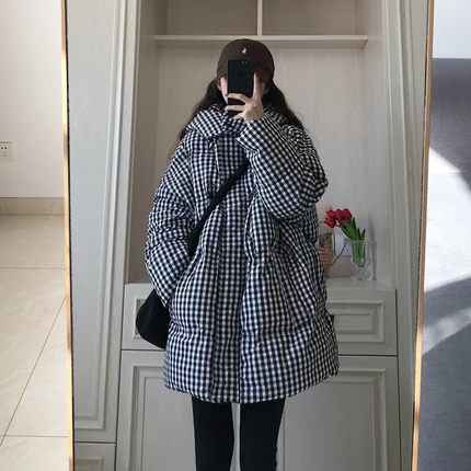 格子羽绒棉服女棉衣2025秋冬季新款宽松韩版显瘦加厚面包服外套