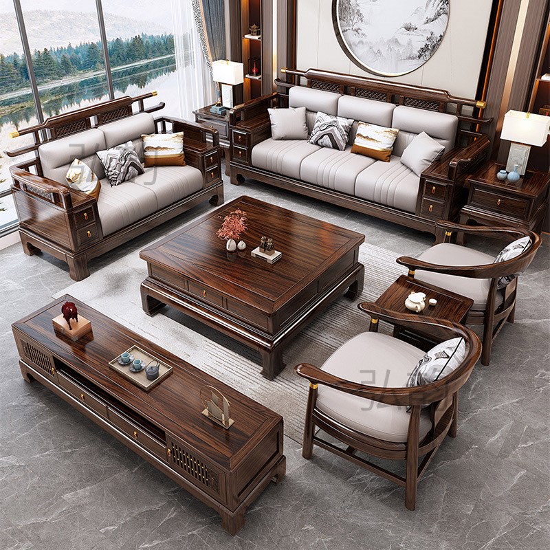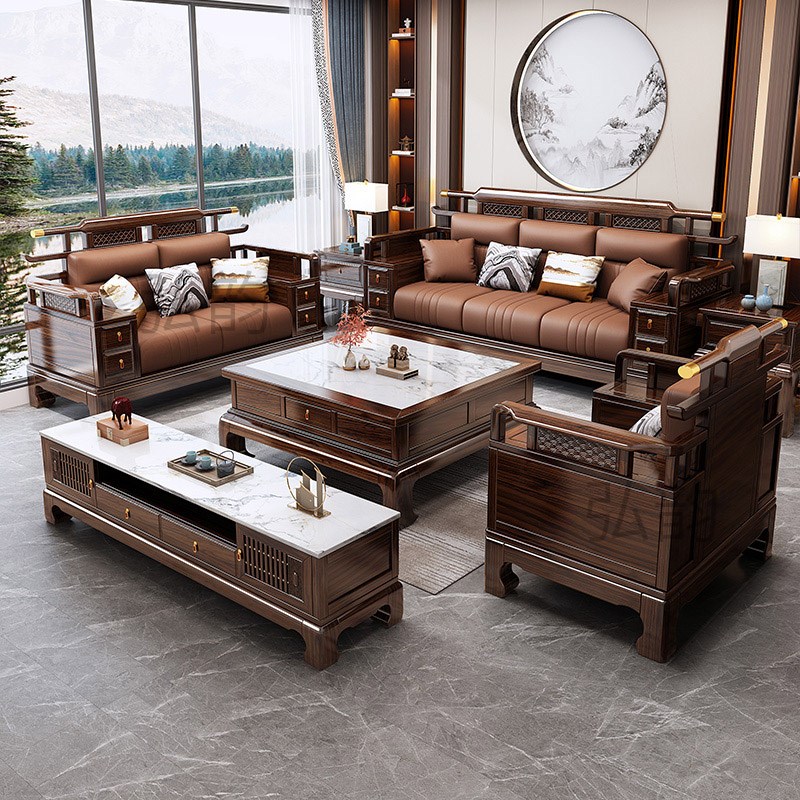 中式乌金木实木沙发组合客厅2024新款茶几高档冬夏两用禅意家具