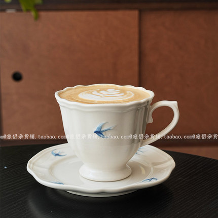 复古浮雕燕归来陶瓷咖啡杯碟拿铁拉花杯家用杯子下午茶杯日式