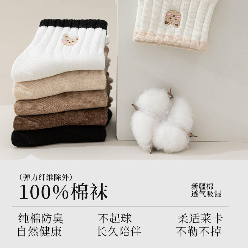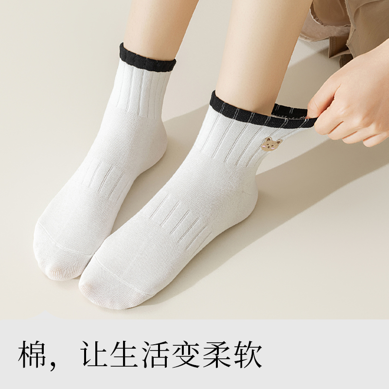 袜子女款中筒袜纯棉秋冬薄款短袜女士2025新款百搭防臭抗菌长筒袜