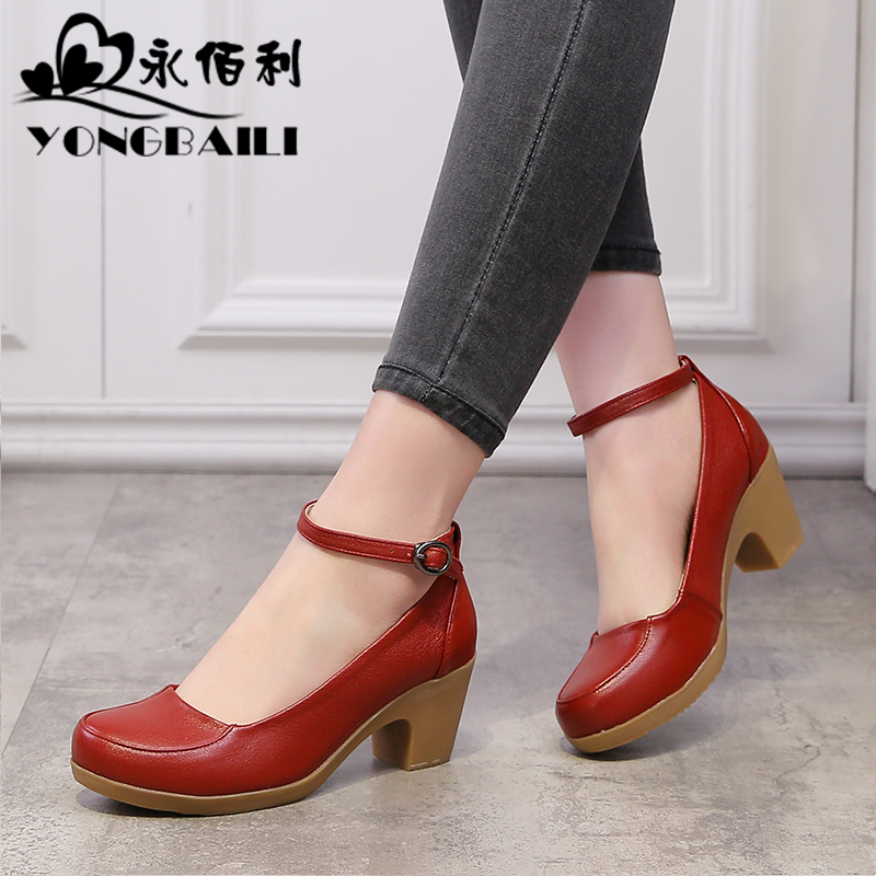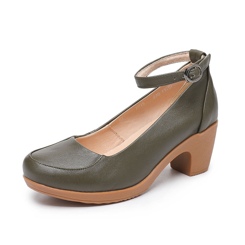 2025春新品原创复古羊皮单鞋女高粗跟浅口日系真皮休闲鞋女鞋皮鞋