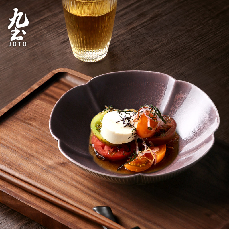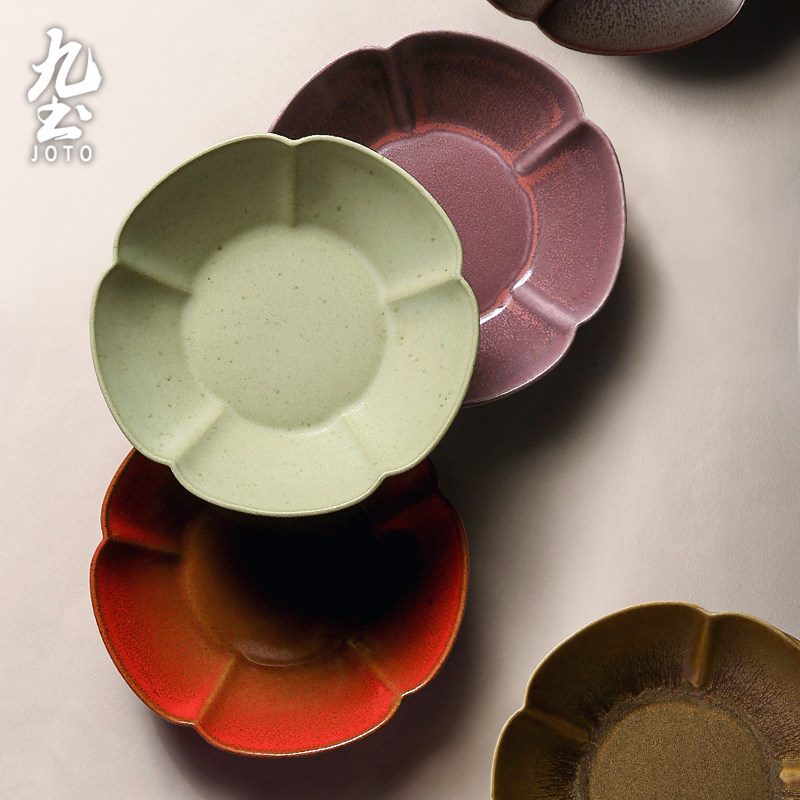 九土手工复古餐盘花型创意菜盘家用陶瓷花朵水果盘沙拉盘花边食器