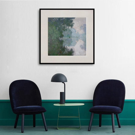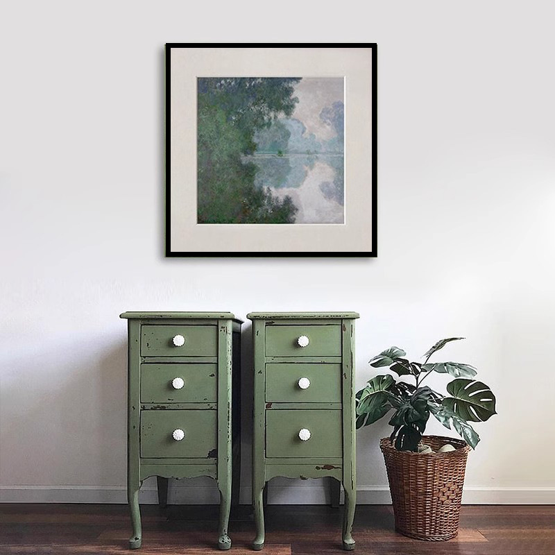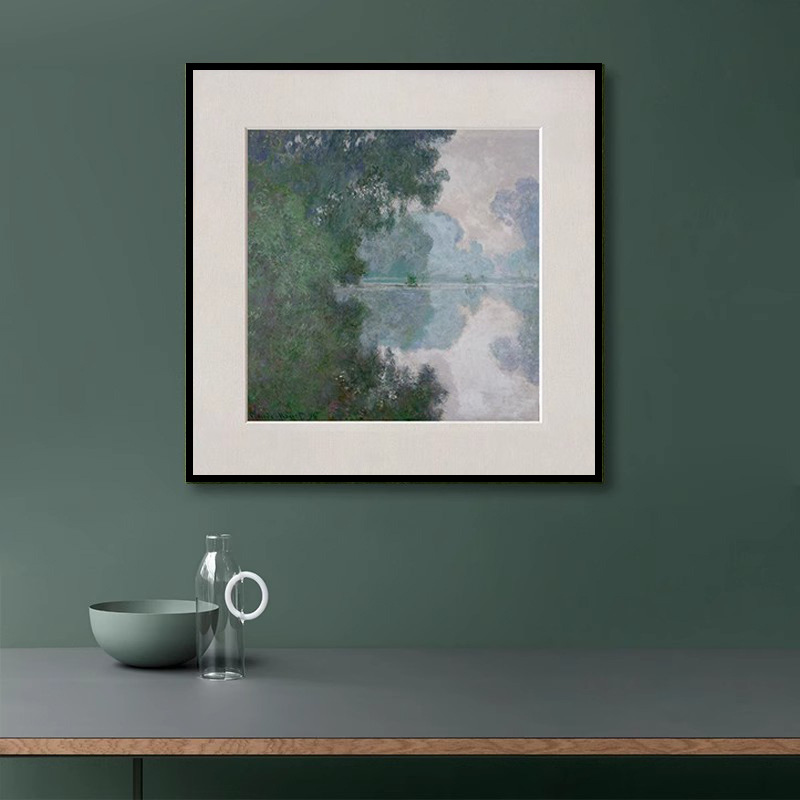 客厅挂画莫奈清晨塞纳河摆画简约小众复古书房沙发油画风格装饰画