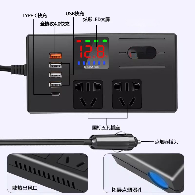车载逆变器12V24V转220V汽货车大功率点烟器电源转换器充电器扩展