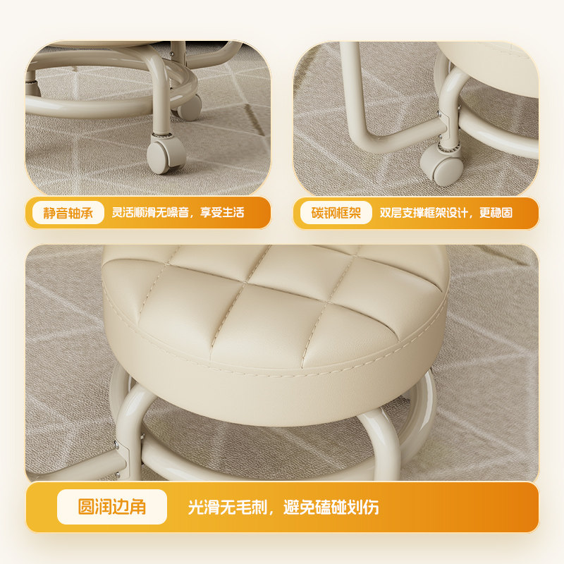 万向轮小凳子滑轮矮凳家用客厅懒人移动圆凳儿童沙发椅子带娃板凳