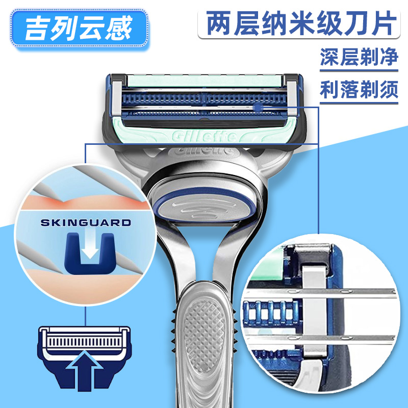 吉列Gillette云感SKINGUARD手动剃须刀刀架刮胡刀片 痘痘肌福音