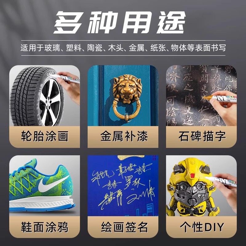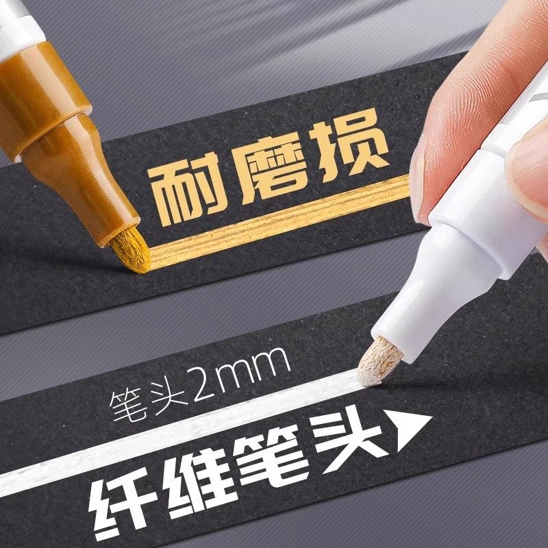 金属油漆笔工业永久不掉色速干防水专用油性签字笔金色高光补漆马克笔汽车轮胎黑色记号笔彩色白色银红色