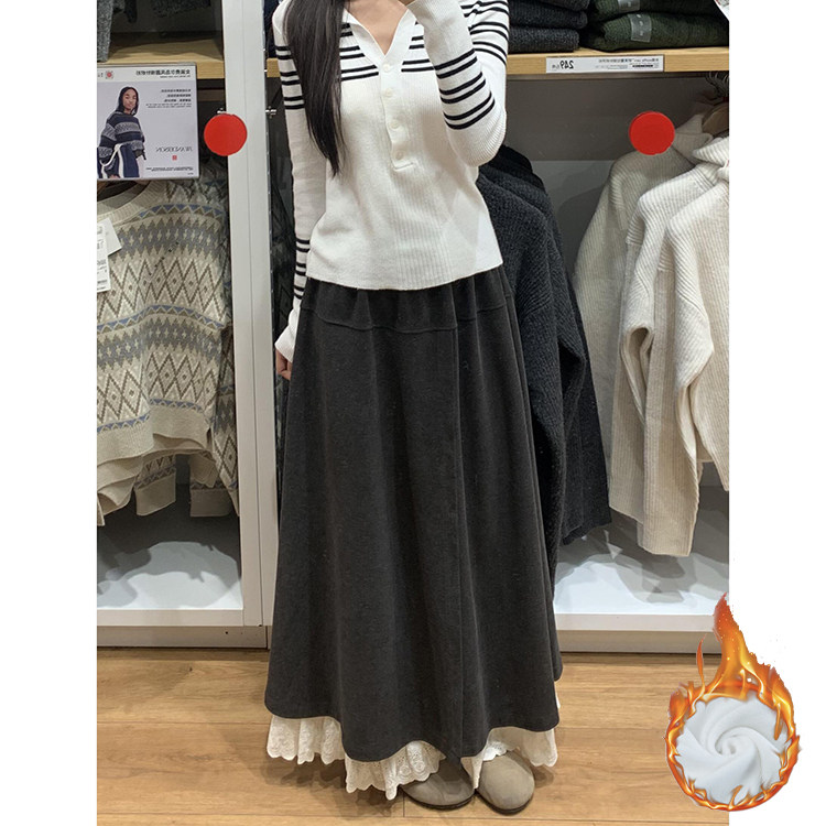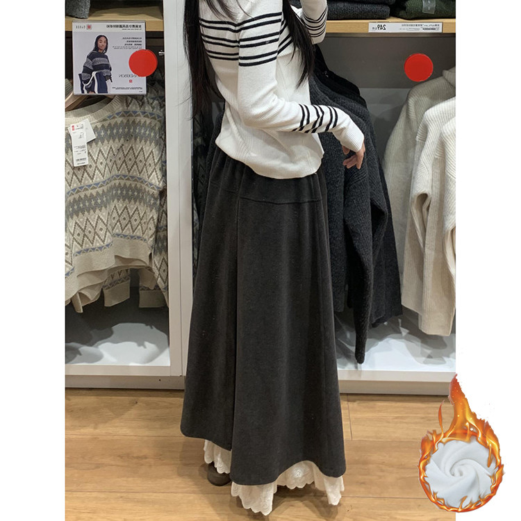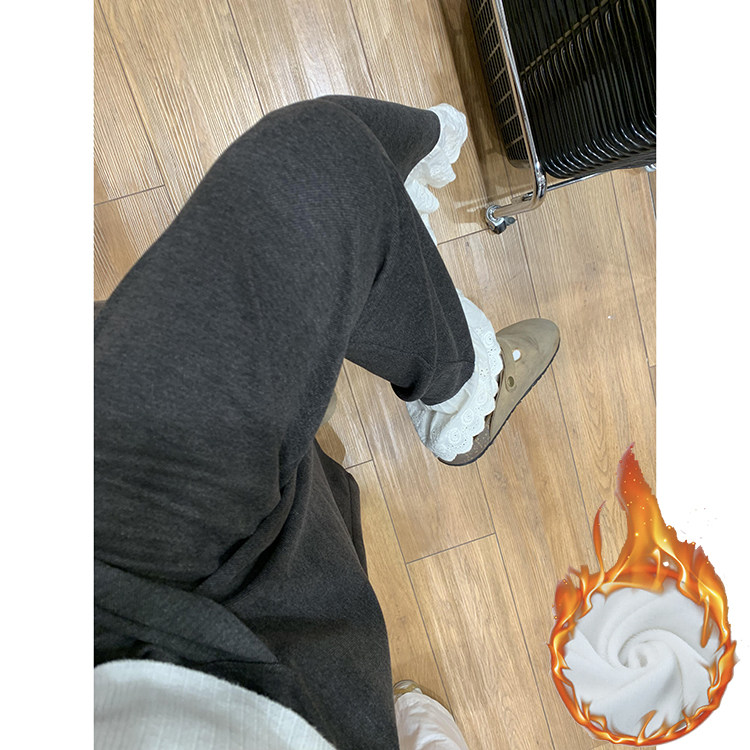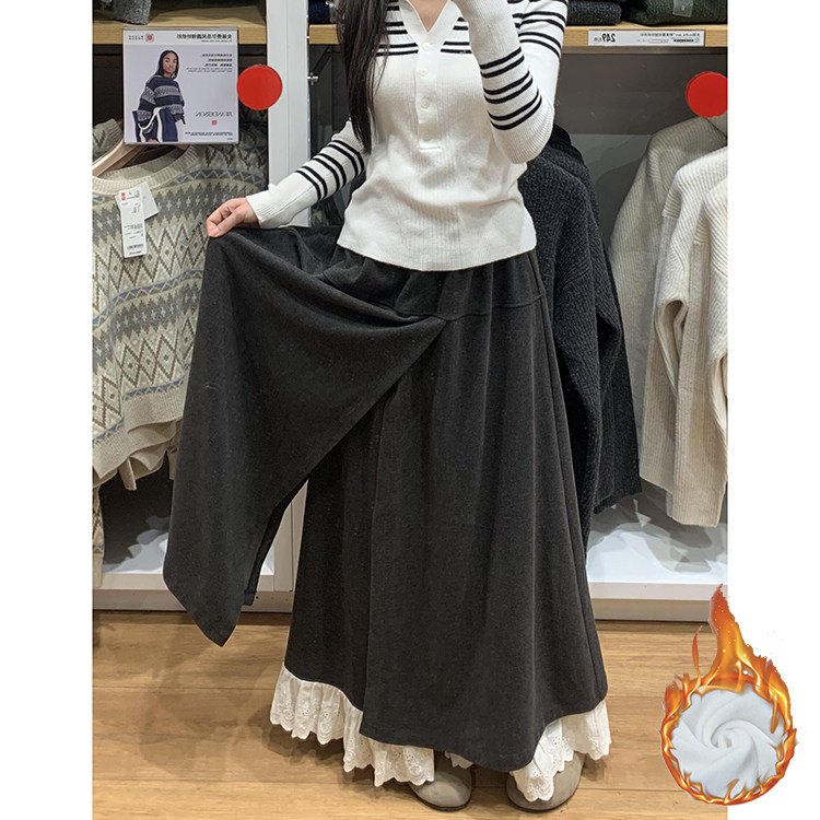 松弛感拼接蕾丝花边裙裤女秋冬2025新款加绒加厚高腰慵懒风阔腿裤