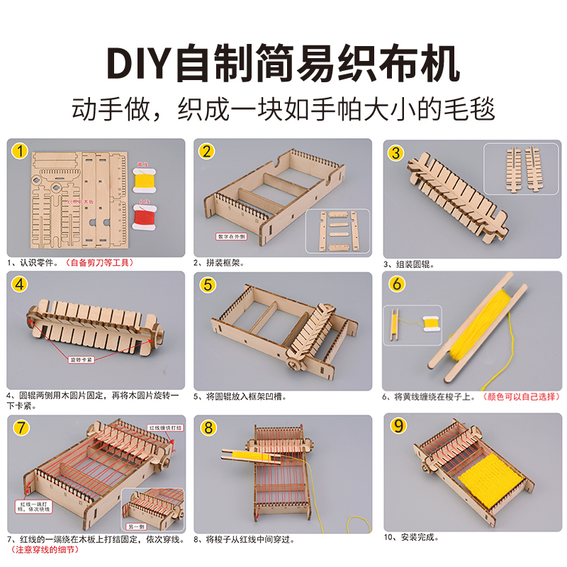科技小制作小发明手动织布机复古纺织机幼儿园小女孩手工玩具材料
