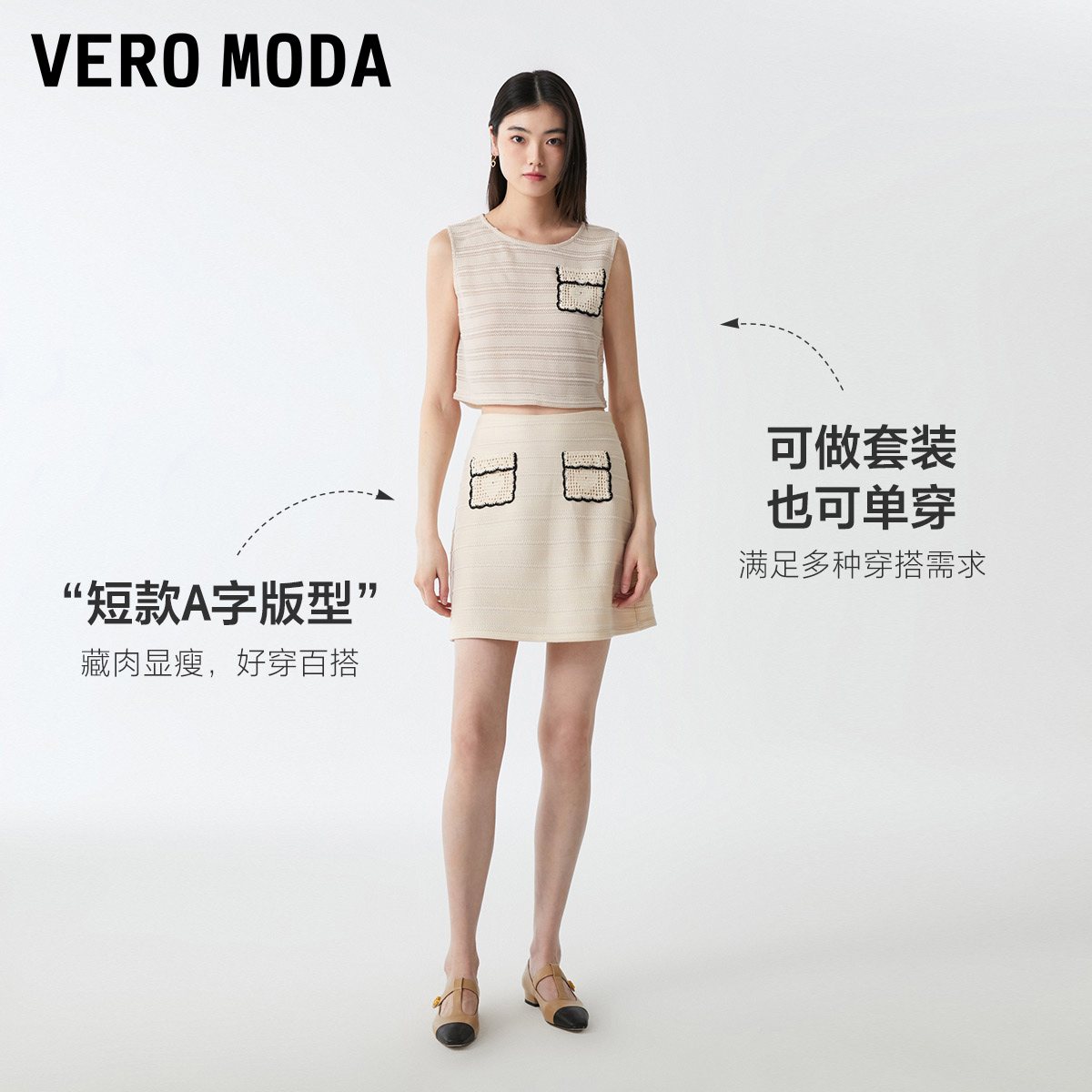 Vero Moda奥莱半身裙夏季清仓高腰A字钩针撞色短裙百搭气质度假风