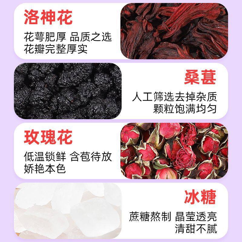 桑葚玫瑰洛神花茶三花正品官方旗舰店泡水喝茶包适合女生养生花茶