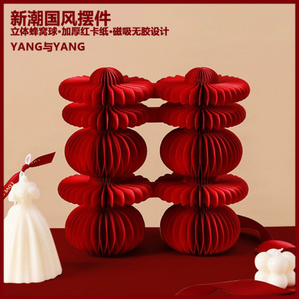立体喜字蜂窝球摆件套装婚房布置订婚礼桌面摆台装饰双囍结婚用品
