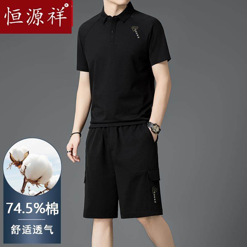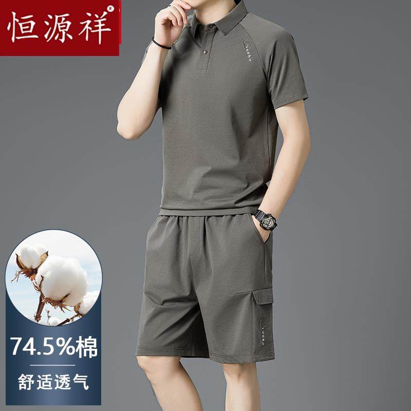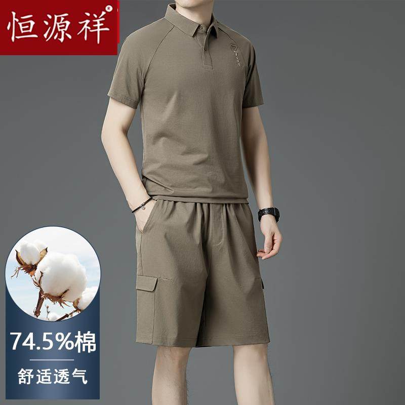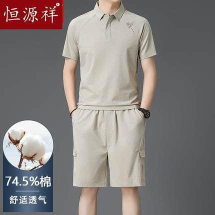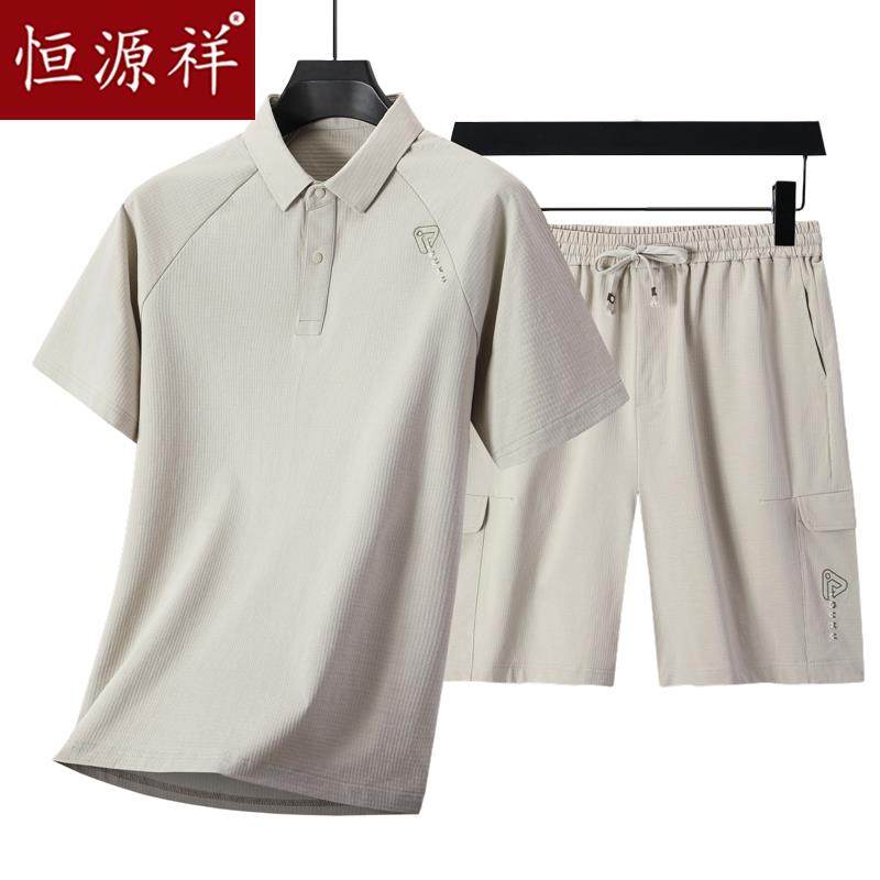 恒源祥男士休闲运动套装夏季中年爸爸装短袖T恤polo衫短裤两件套