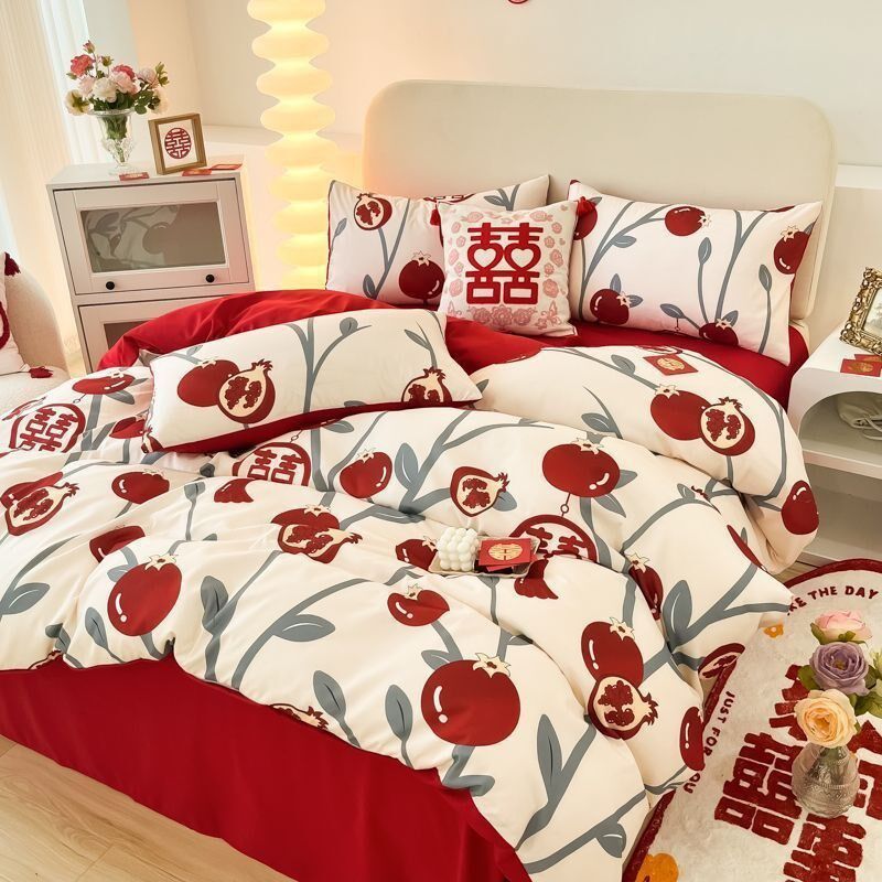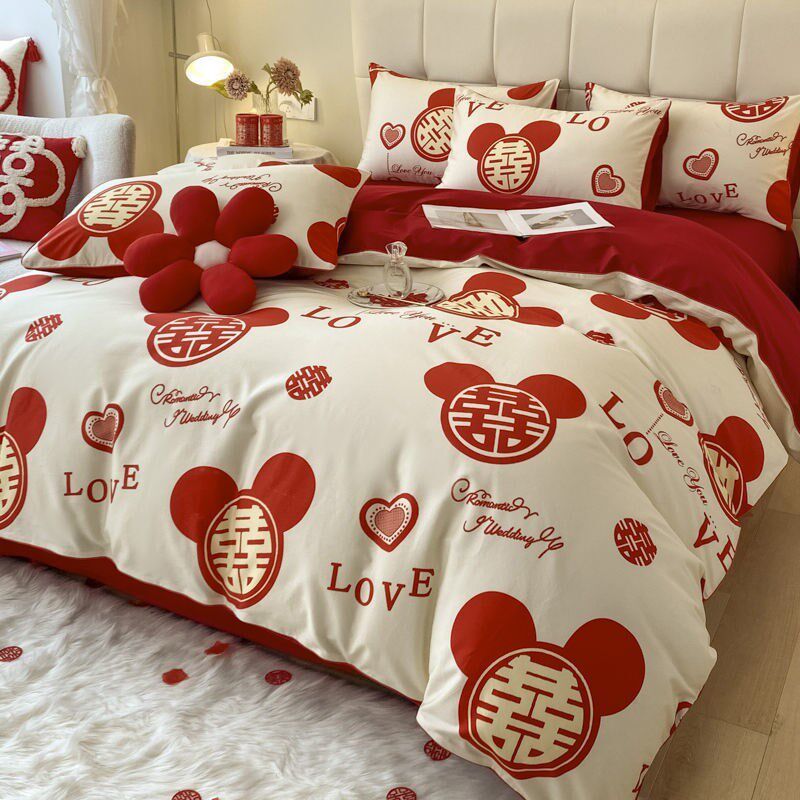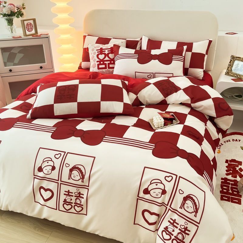 四件套结婚婚庆红色纯棉磨毛被套床单时尚床上用品现货
