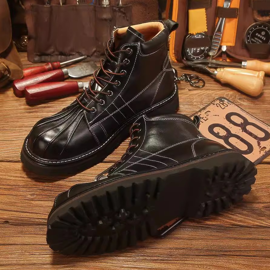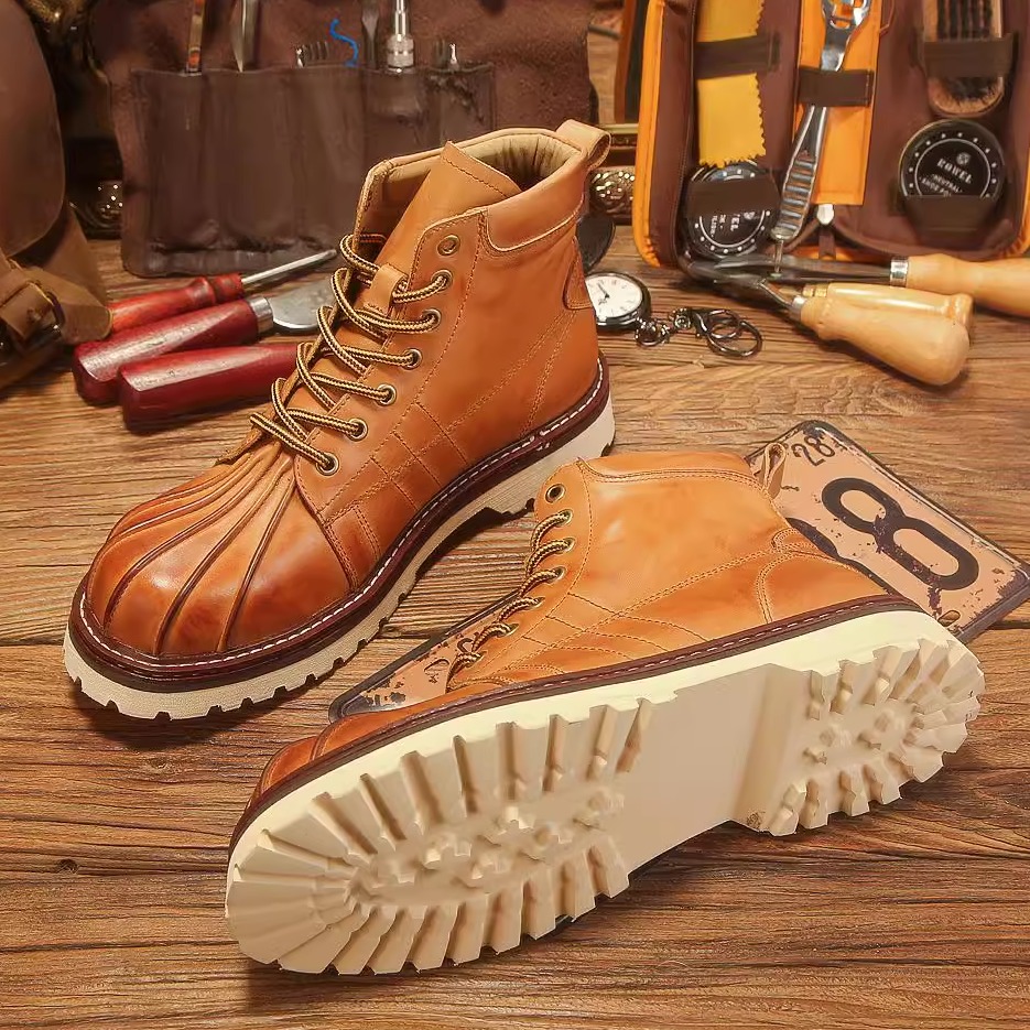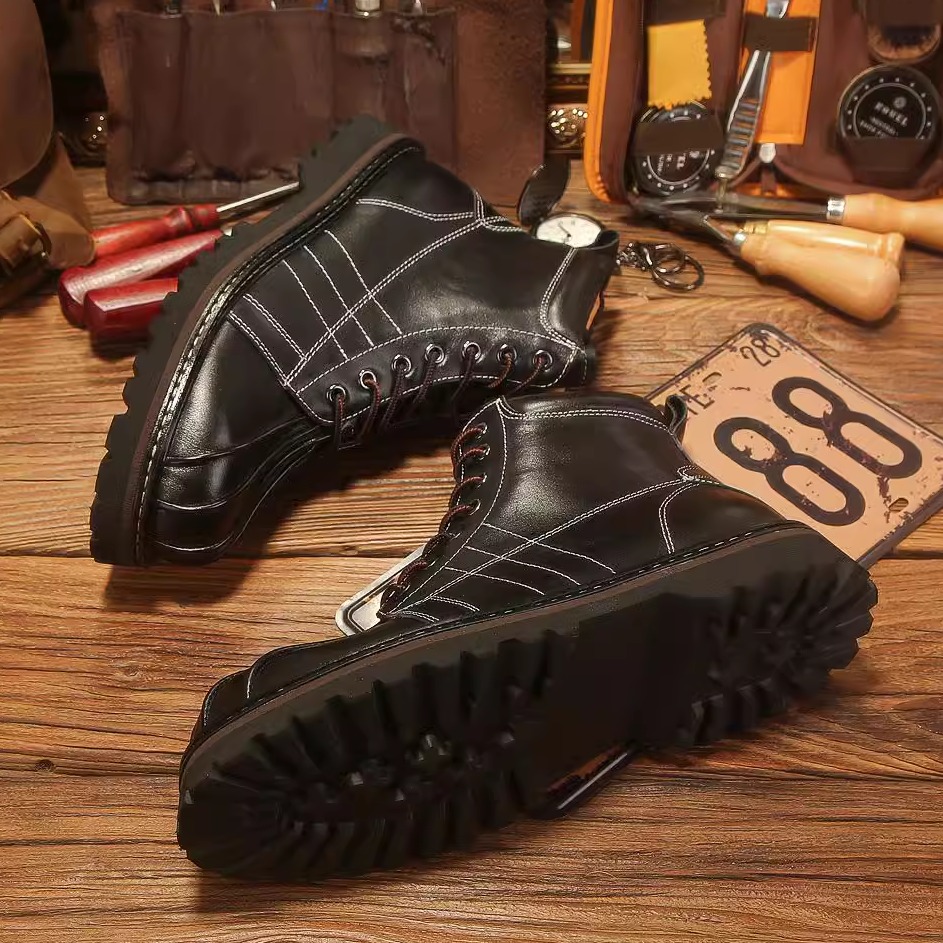 2025秋季新款马丁靴男高帮英伦美式复古真皮皮鞋休闲贝壳头工装靴