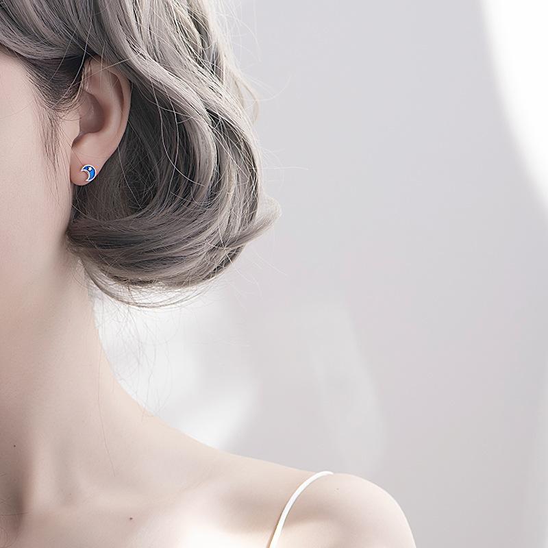 Sixi Cake不对称蓝色宇宙月亮耳钉女ins风小众百搭设计养耳洞耳环