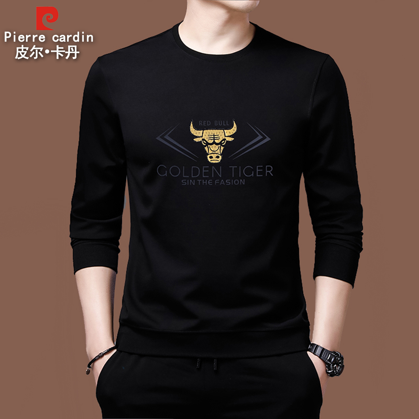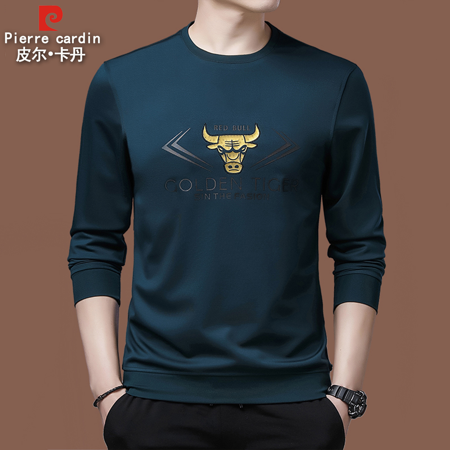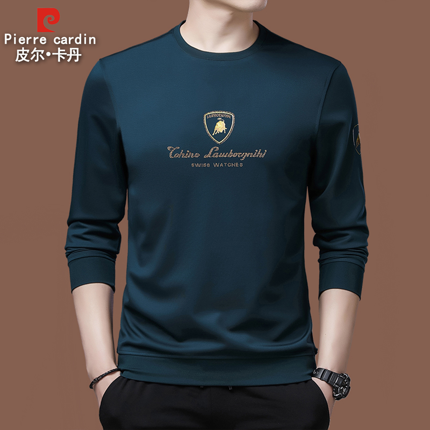 皮尔卡丹男装2025秋冬长袖t恤休闲圆领卫衣纯棉加绒加厚打底上衣