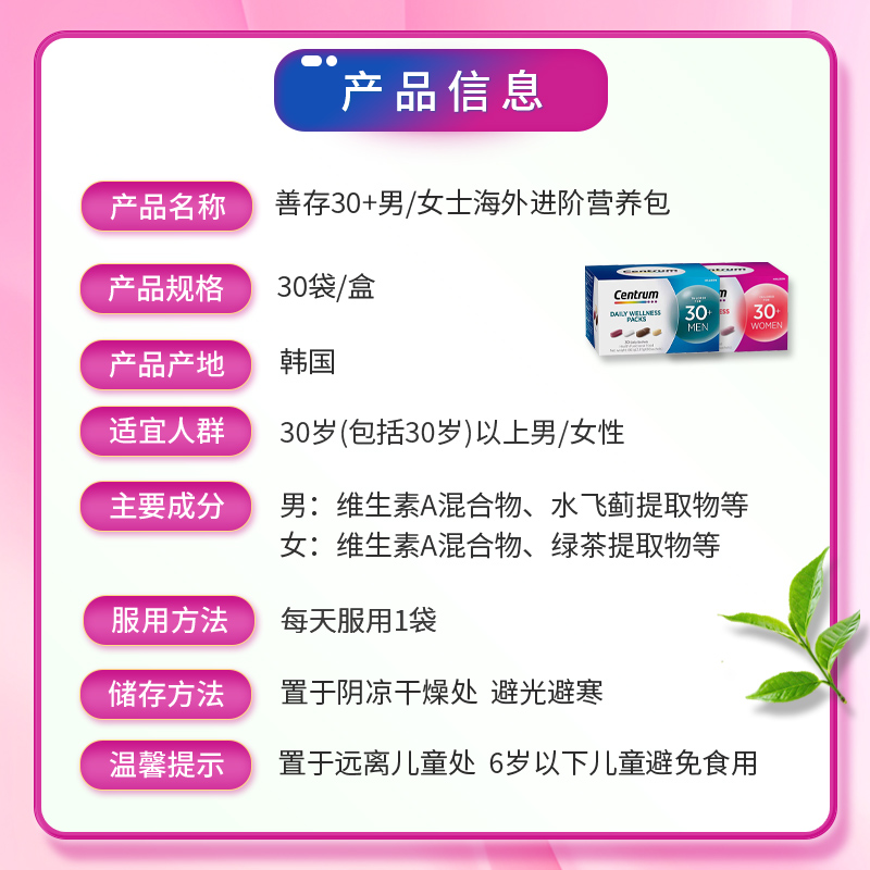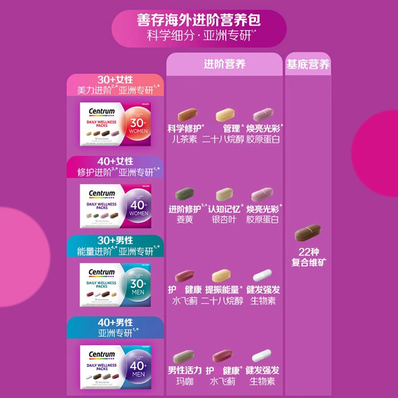 Centrum善存海外进阶每日营养包男女复合维生素30/40岁保健品铁锌