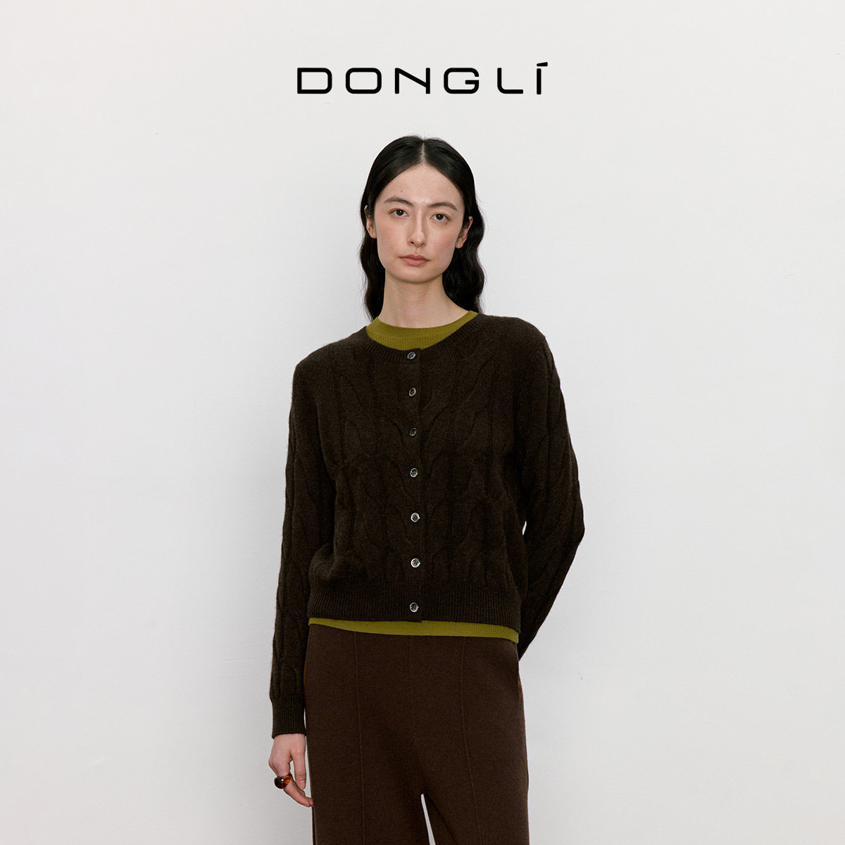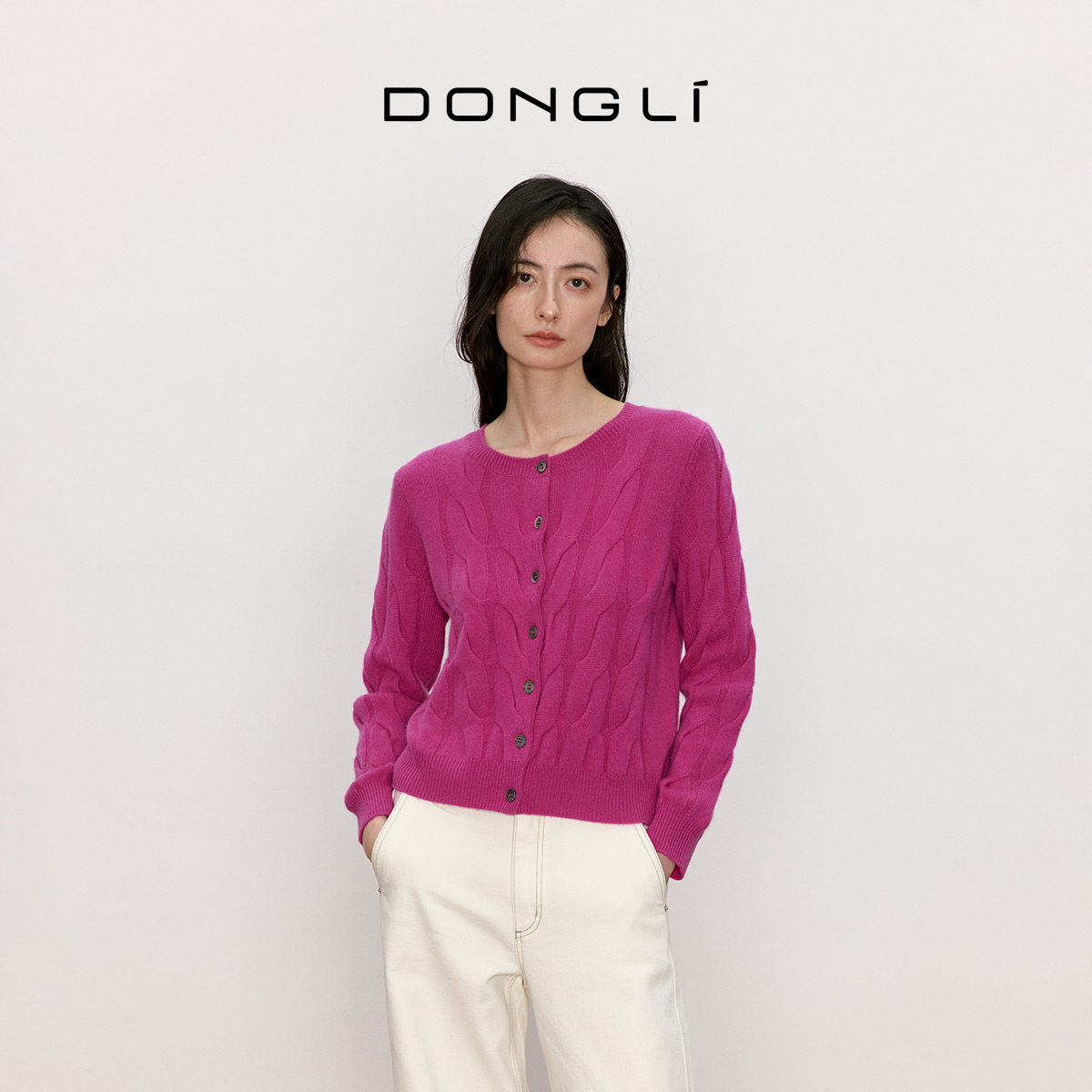 东黎山羊绒 女士春秋冬慵懒风时尚绞花羊绒开衫外套百搭热销4623